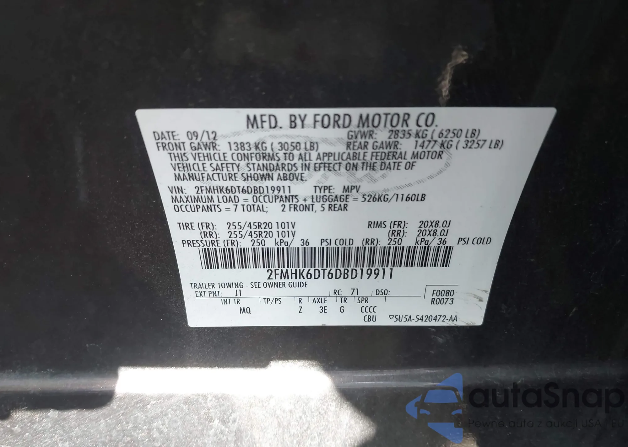 • VIN: 2FMHK6DT6DBD19911