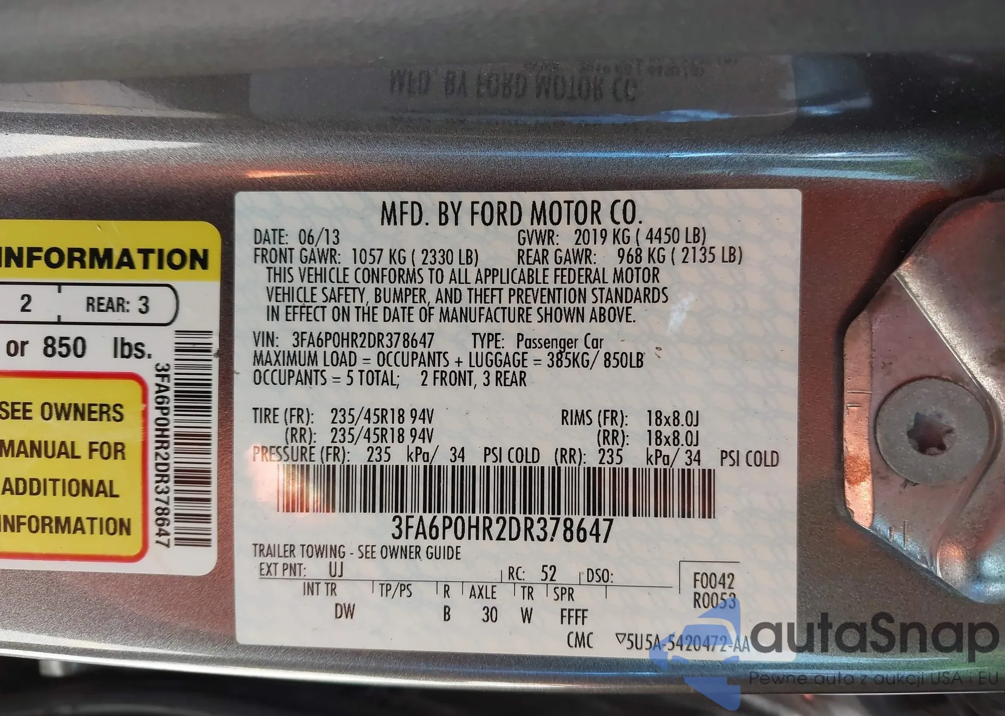 VIN: 3FA6P0HR2DR378647