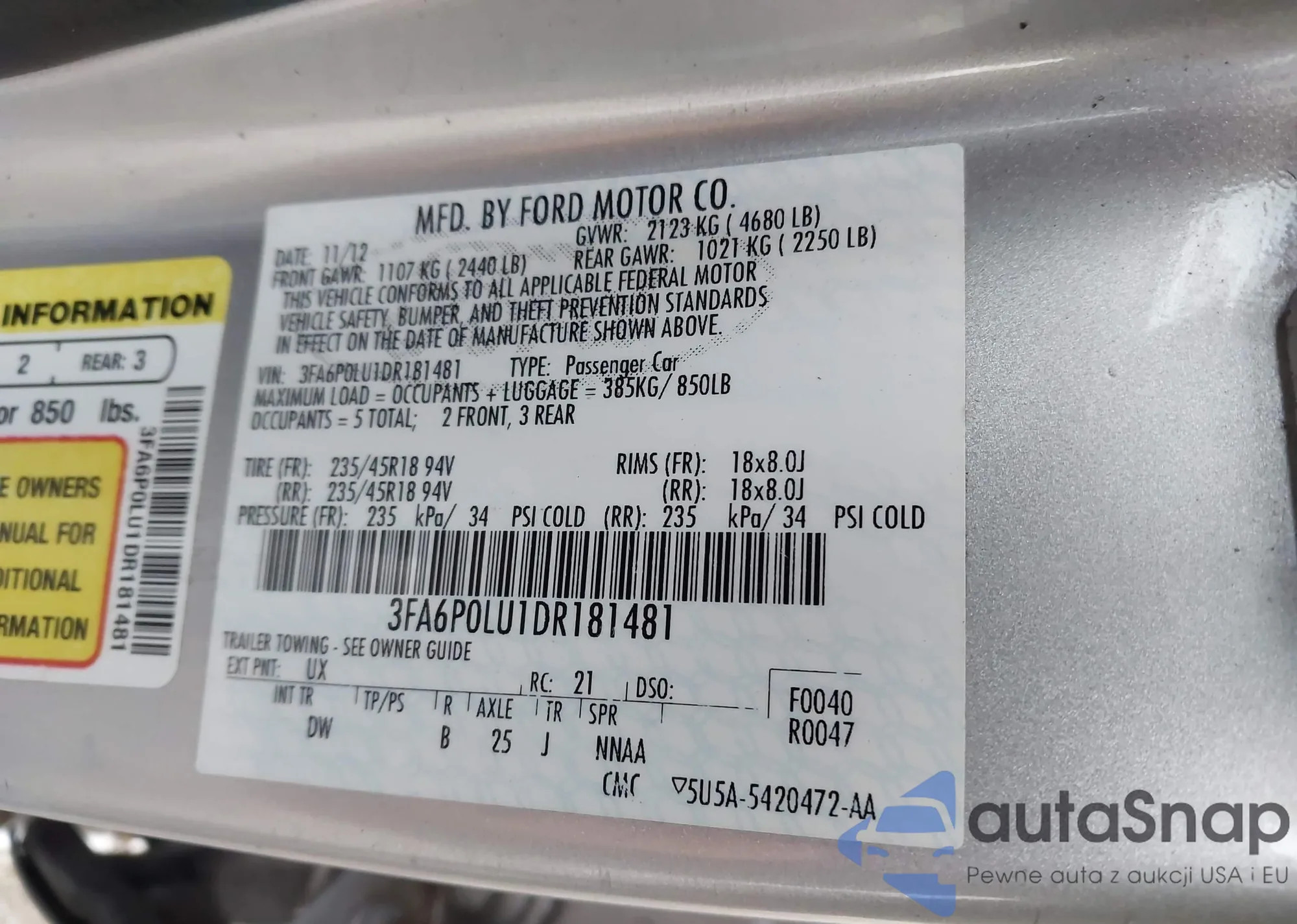 VIN: 3FA6P0LU1DR181481
