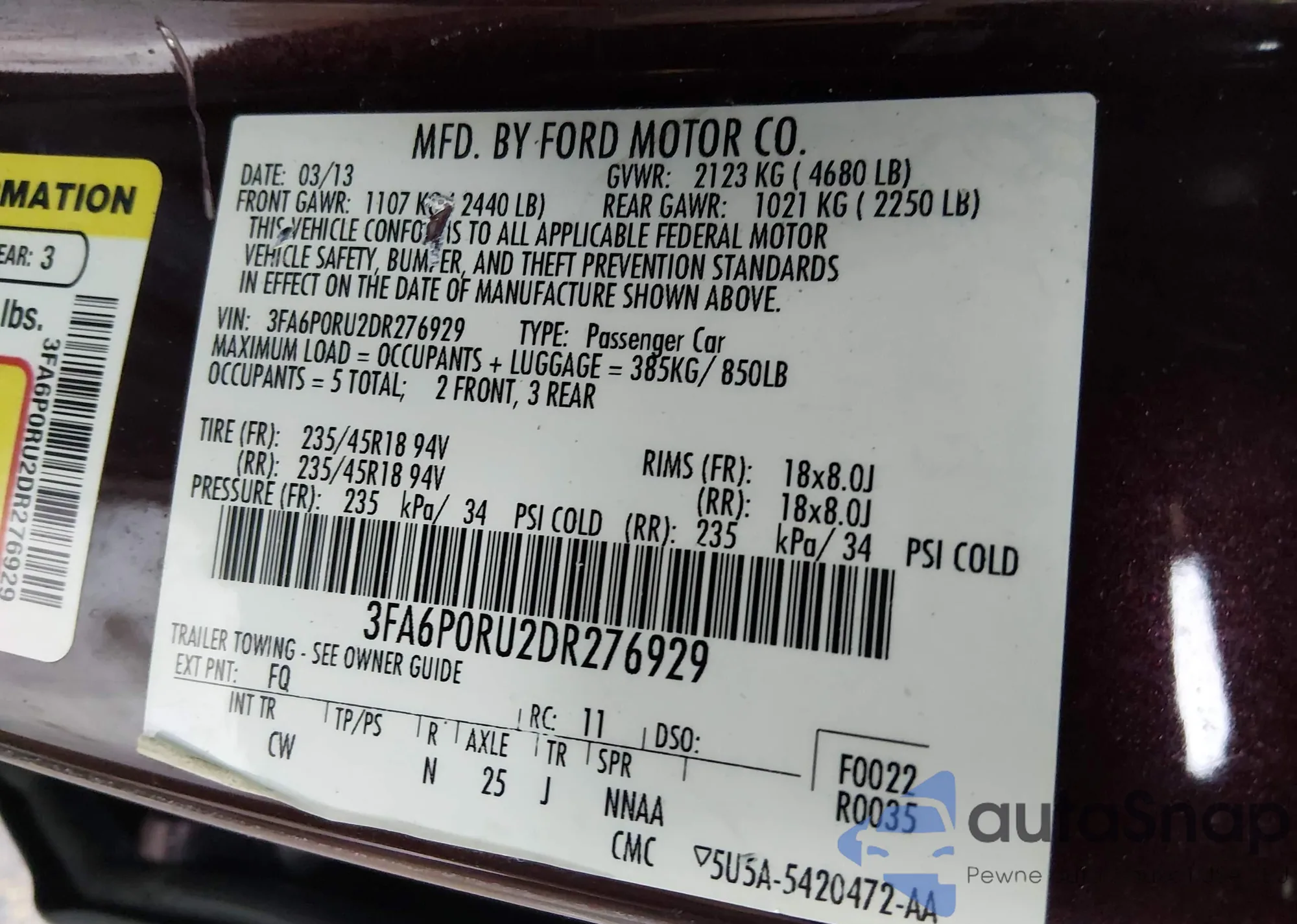 Samochód Ford Fusion 2013 (VIN 3FA6P0RU2DR276929) nie był wcześniej licytowany. Dokumenty są czyste, przebieg odpowiada lub jest niższy niż średnia rynku. Sprzedaje go firma ubezpieczeniowa – polecamy zakup. Dostawa do portu zajmie ok. 6–8 tygodni.