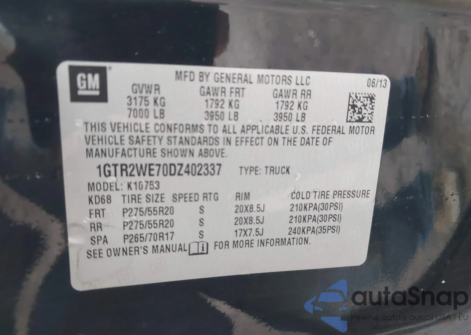 Samochód GMC Sierra 2013 (VIN 1GTR2WE70DZ402337) nie był wcześniej licytowany. Dokumenty są czyste, przebieg odpowiada lub jest niższy niż średnia rynku. Sprzedaje go firma ubezpieczeniowa – polecamy zakup. Dostawa do portu zajmie ok. 6–8 tygodni.