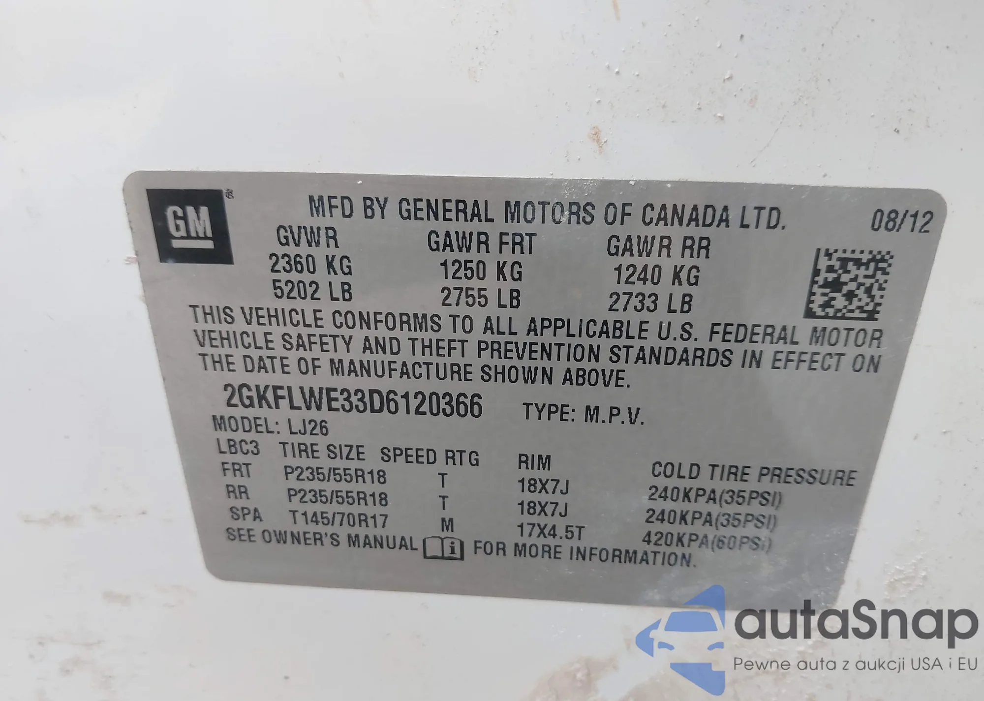 Samochód GMC Terrain 2013 (VIN 2GKFLWE33D6120366) nie był wcześniej licytowany. Dokumenty są czyste, przebieg odpowiada lub jest niższy niż średnia rynku. Sprzedaje go firma ubezpieczeniowa – polecamy zakup. Dostawa do portu zajmie ok. 6–8 tygodni.