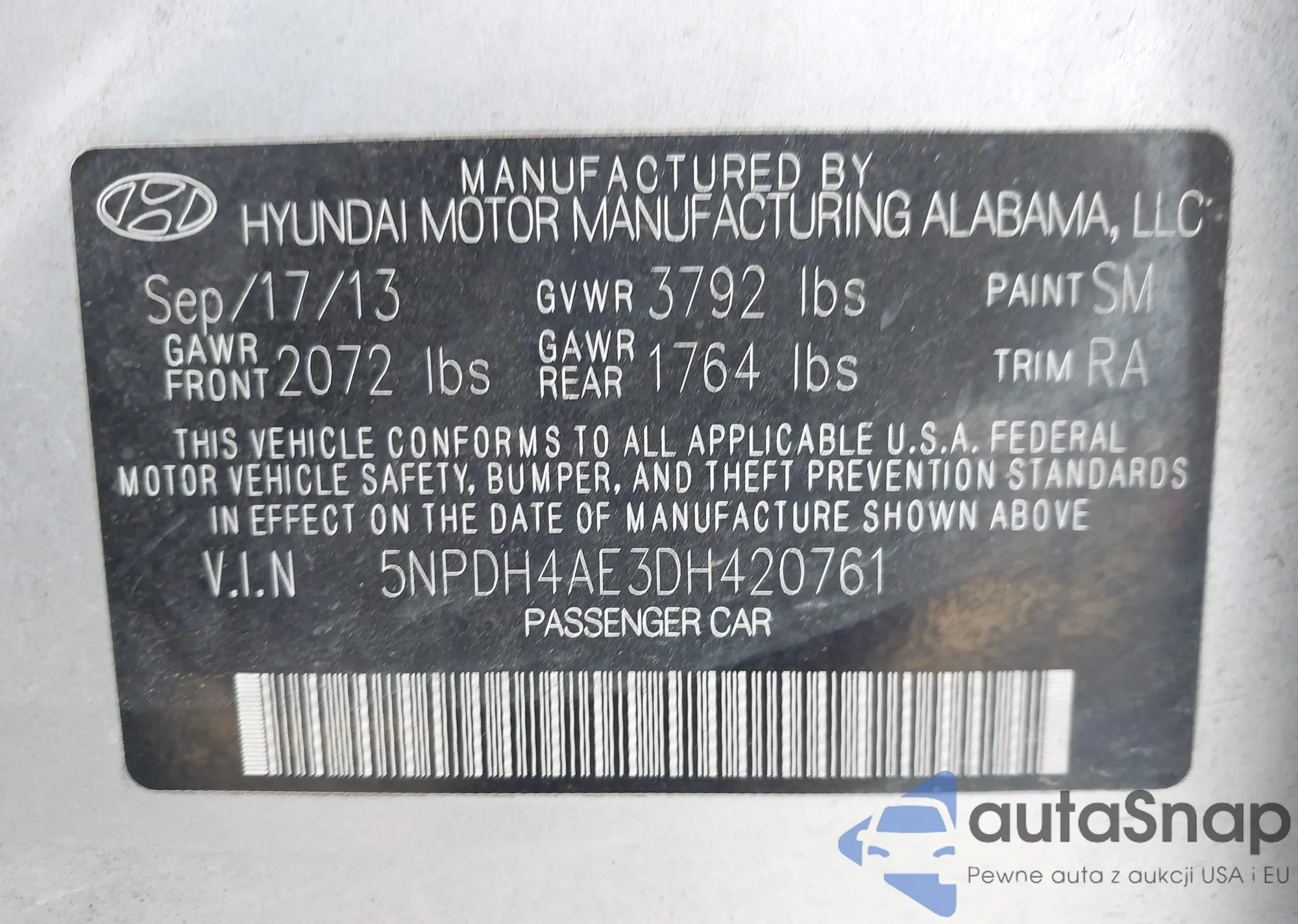 VIN: 5NPDH4AE3DH420761