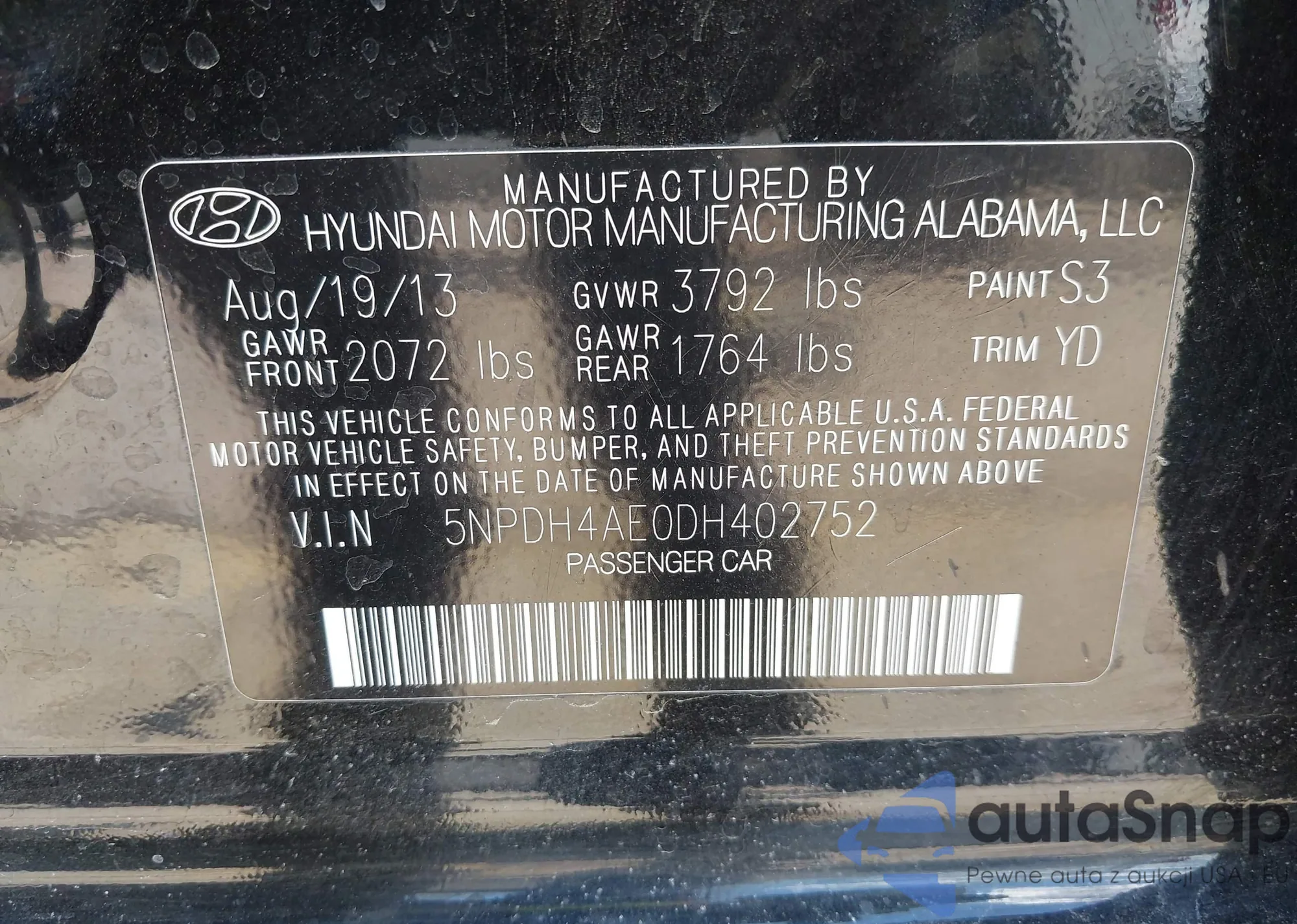 VIN: 5NPDH4AE0DH402752