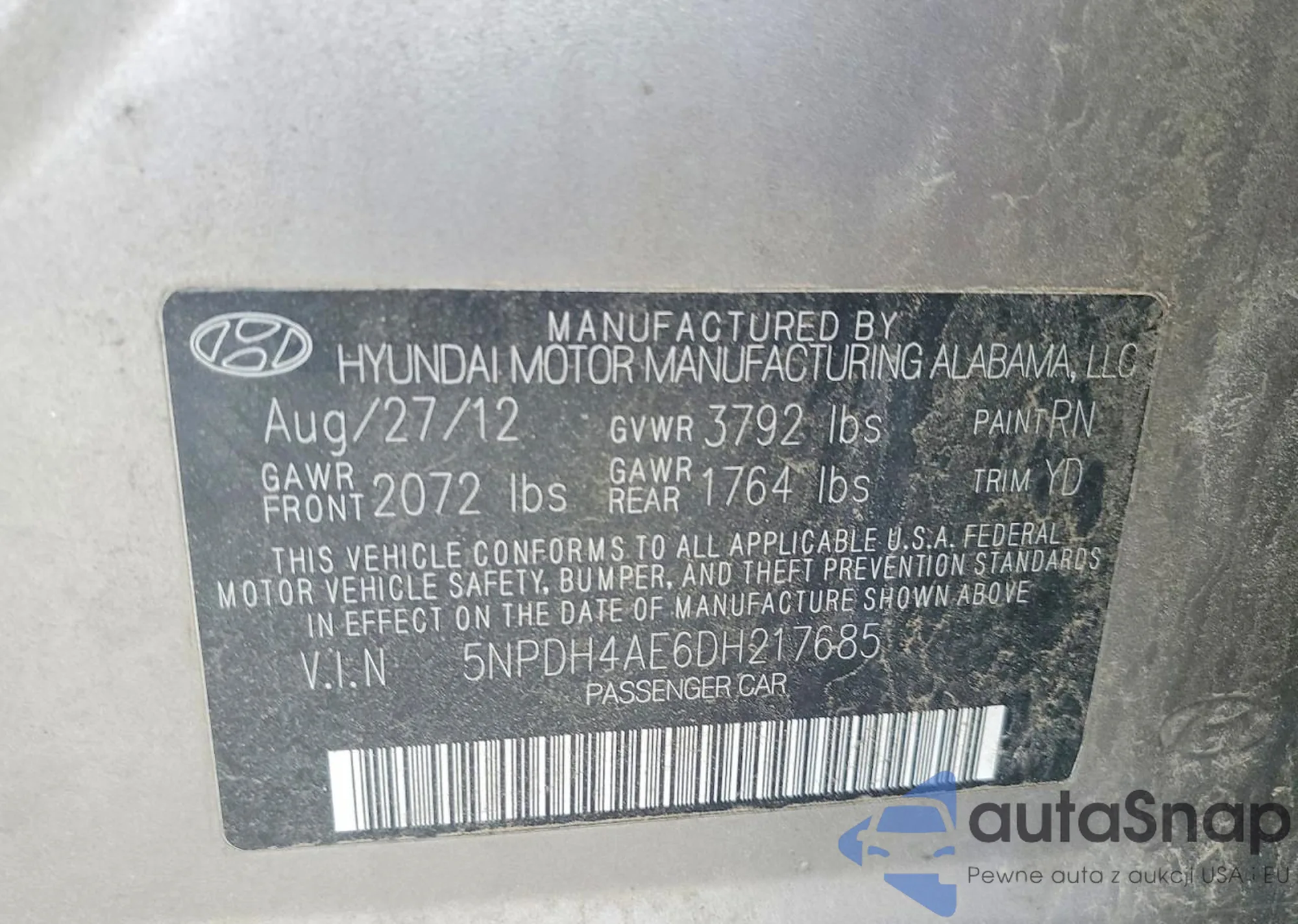 VIN: 5NPDH4AE6DH217685