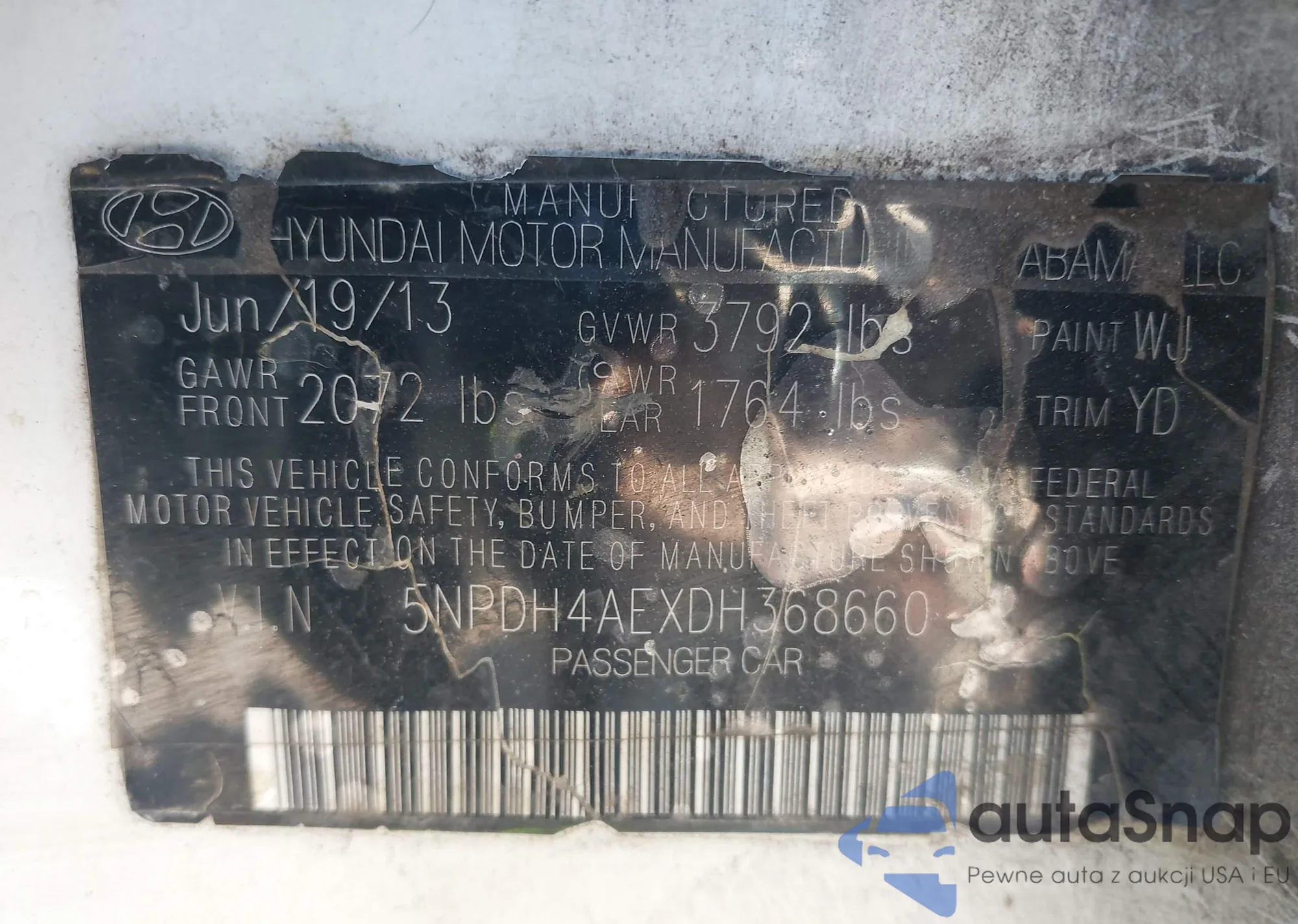 Samochód Hyundai Elantra 2013 (VIN 5NPDH4AEXDH368660) nie był wcześniej licytowany. Dokumenty są czyste, przebieg odpowiada lub jest niższy niż średnia rynku. Sprzedaje go firma ubezpieczeniowa – polecamy zakup. Dostawa do portu zajmie ok. 6–8 tygodni.