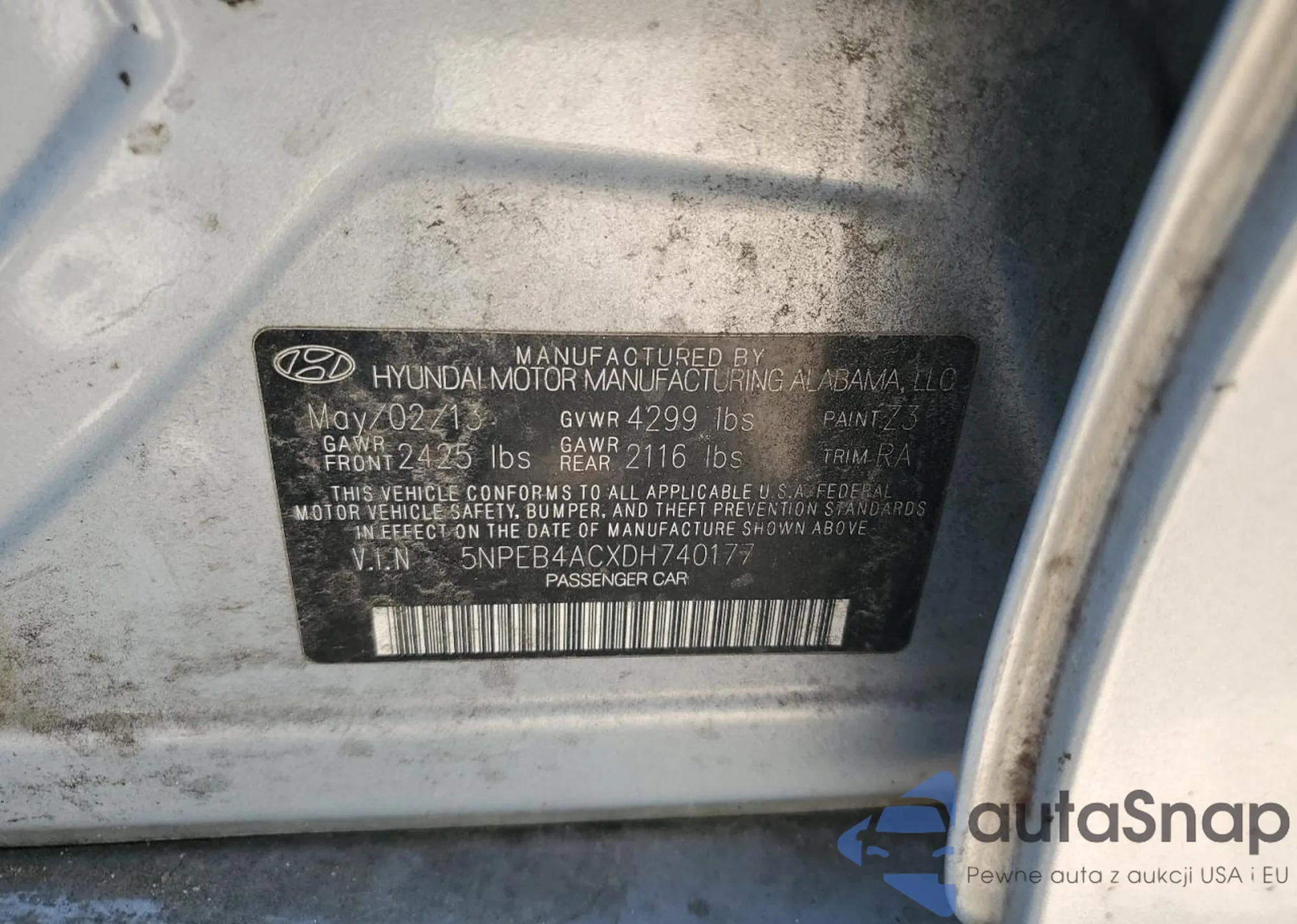 VIN: 5NPEB4ACXDH740177