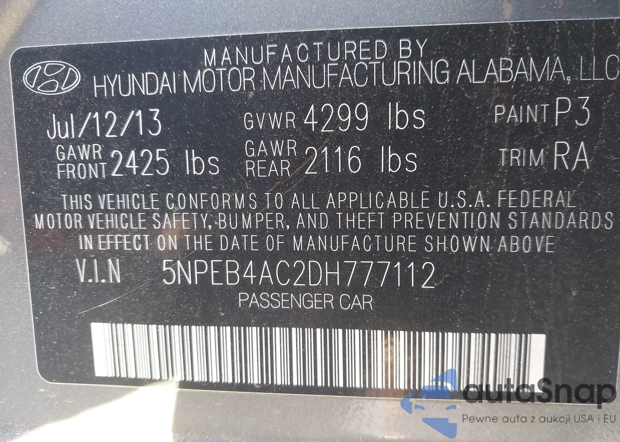 VIN: 5NPEB4AC2DH777112