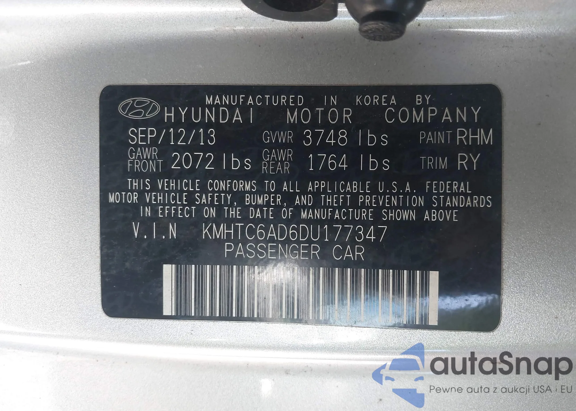 VIN: KMHTC6AD6DU177347