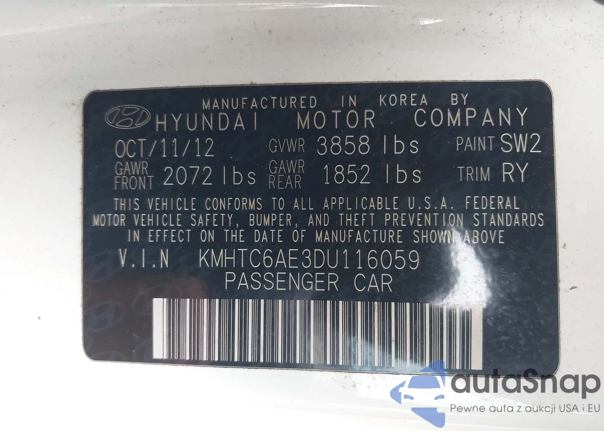 Samochód Hyundai Veloster 2013 (VIN KMHTC6AE3DU116059) nie był wcześniej licytowany. Dokumenty są czyste, przebieg odpowiada lub jest niższy niż średnia rynku. Sprzedaje go firma ubezpieczeniowa – polecamy zakup. Dostawa do portu zajmie ok. 6–8 tygodni.