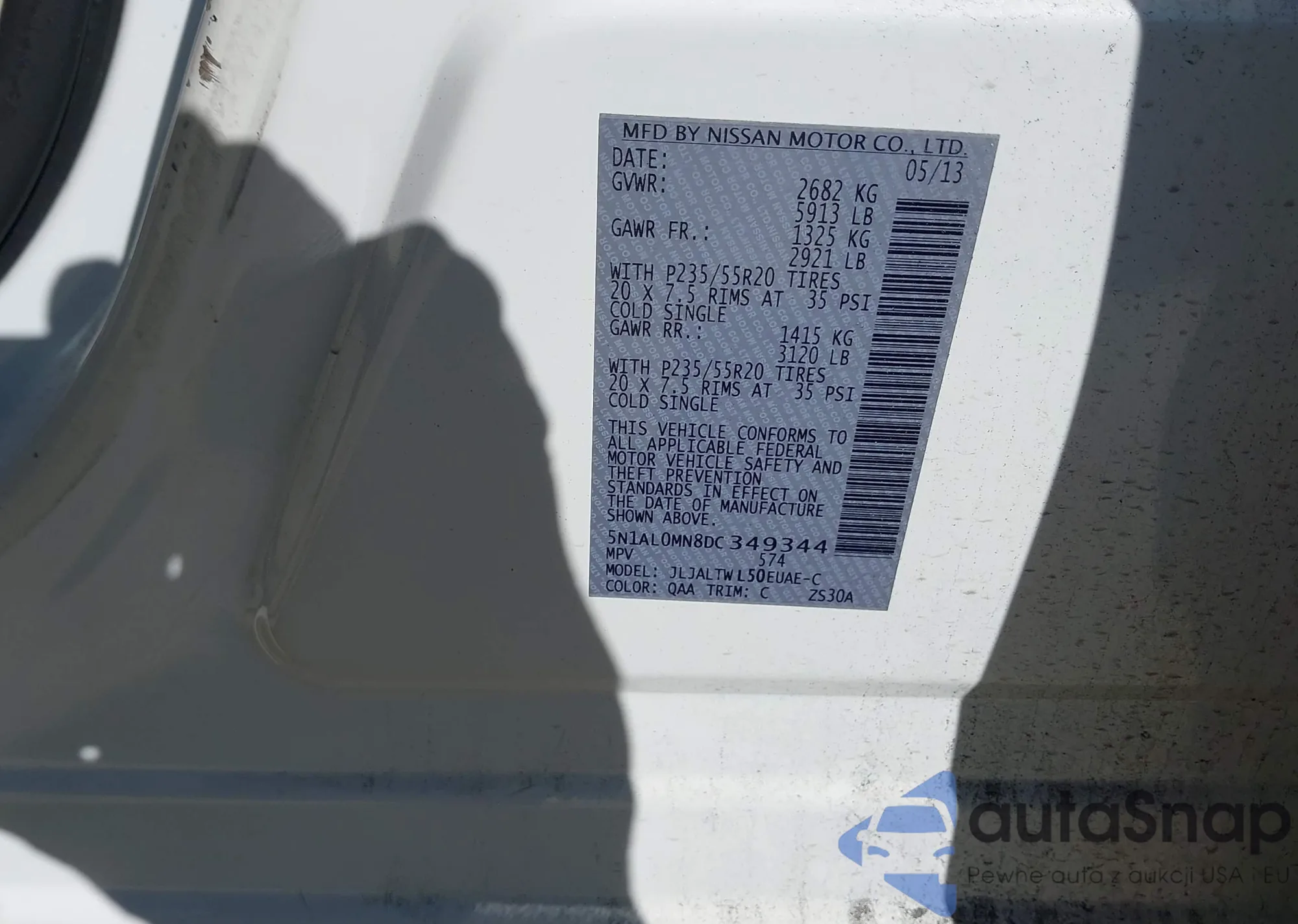 • VIN: 5N1AL0MN8DC349344