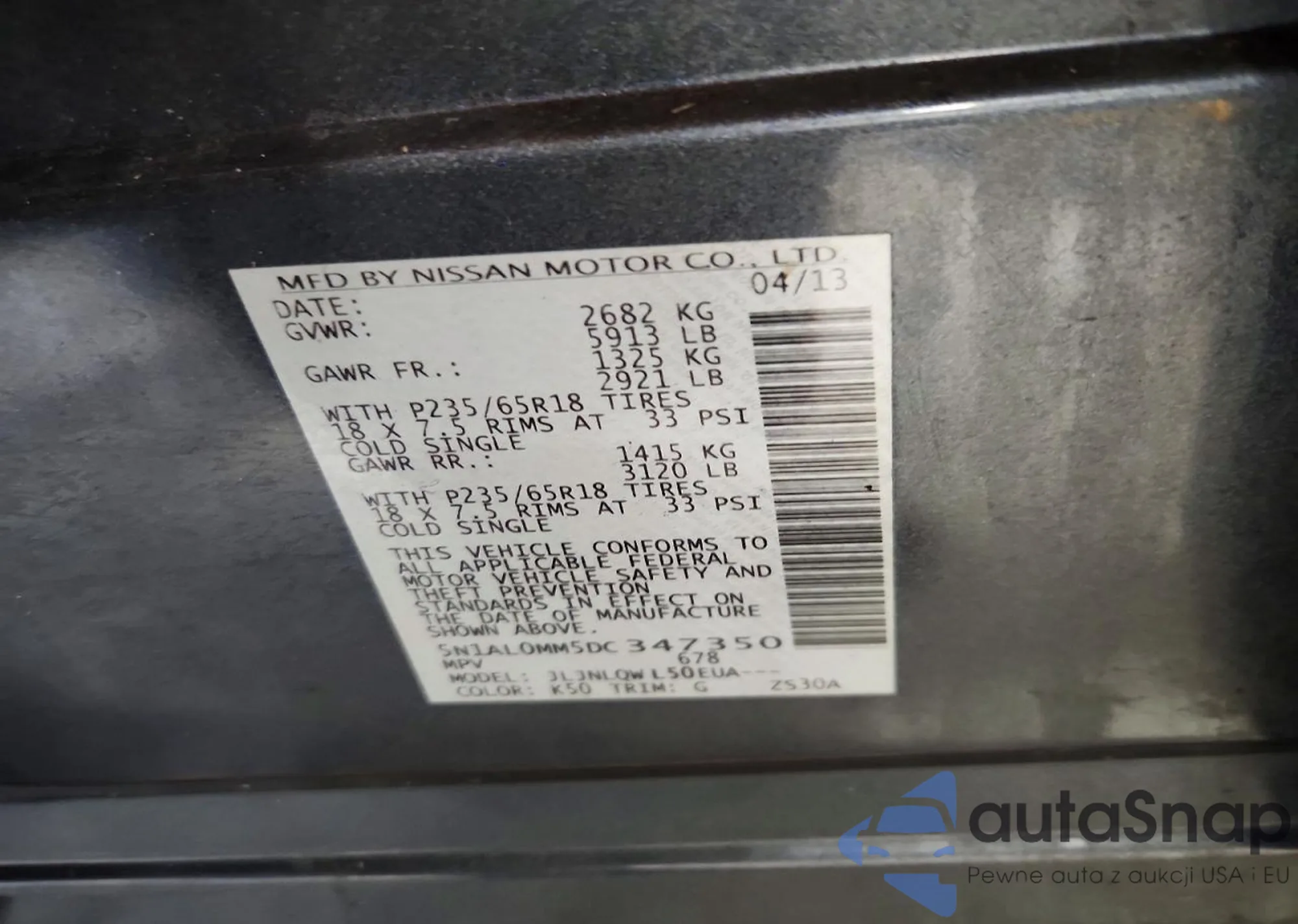 VIN: 5N1AL0MM5DC347350