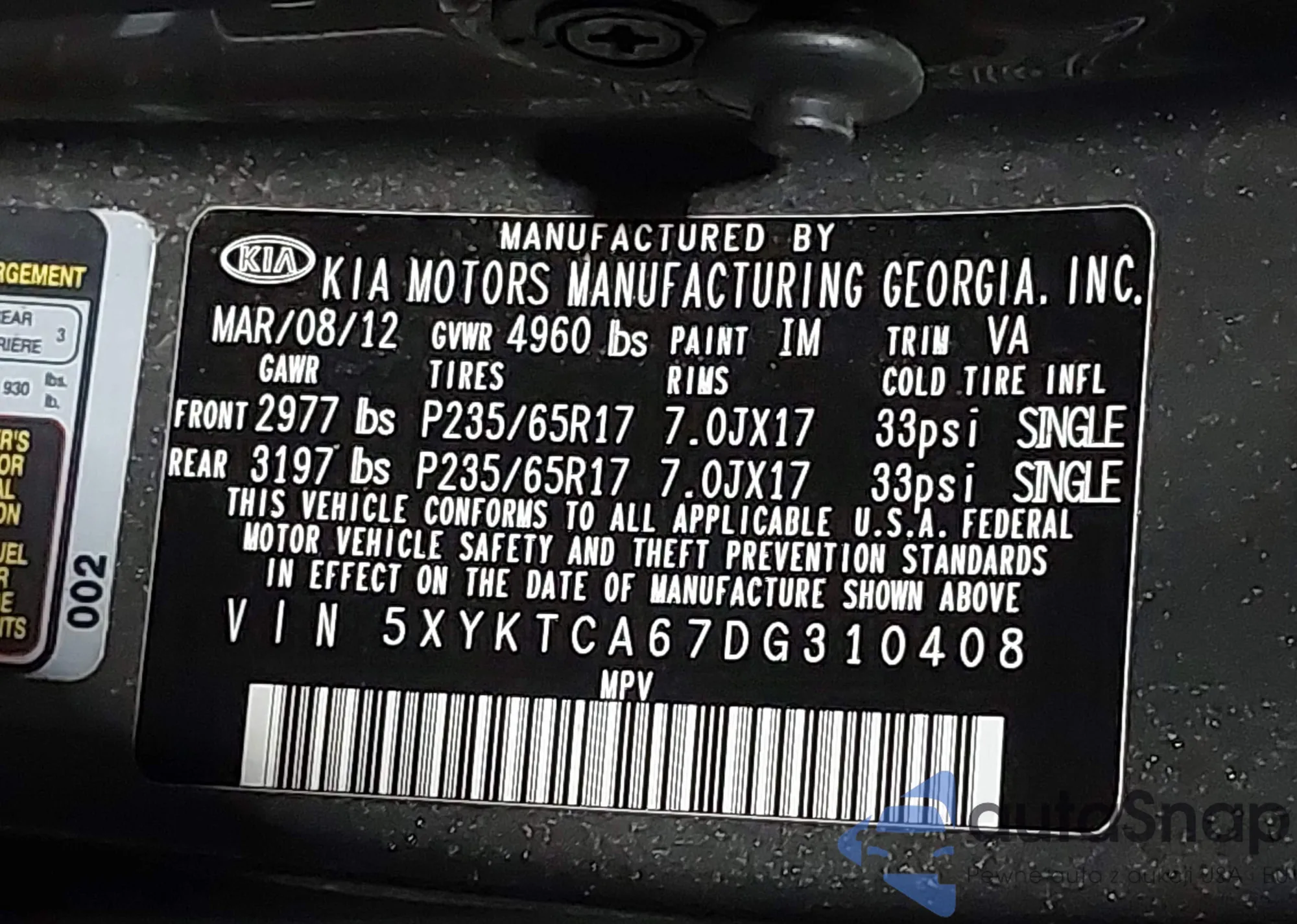 • VIN: 5XYKTCA67DG310408