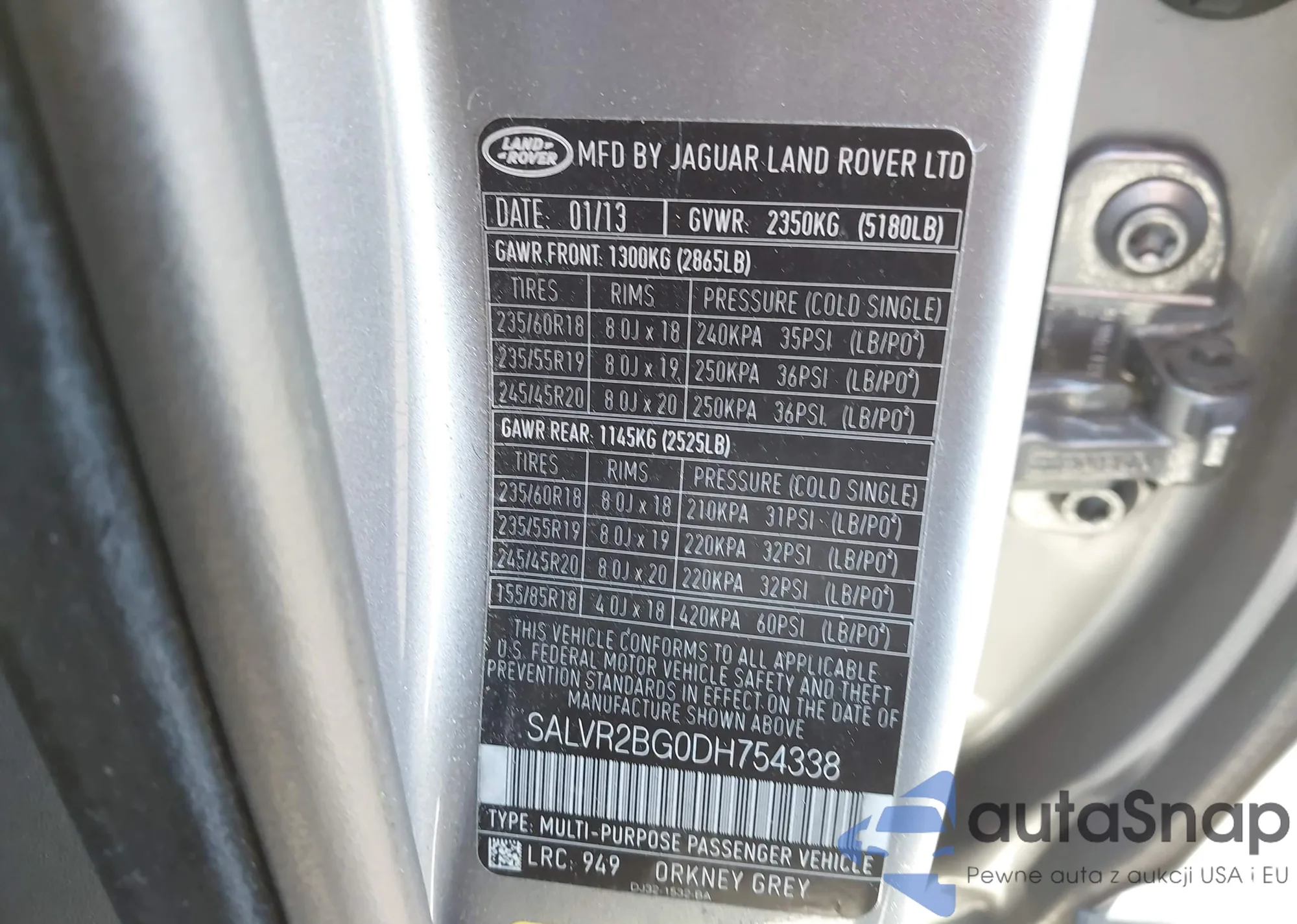 Samochód Land Rover Range Rover Evoque 2013 (VIN SALVR2BG0DH754338) sprzedaje go niezweryfikowany sprzedawca. Zalecamy raport Carfax i potwierdzenie możliwości rejestracji pojazdu przed zakupem.