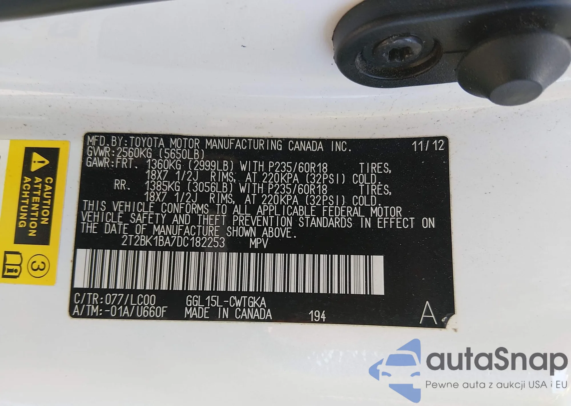 • VIN: 2T2BK1BA7DC182253