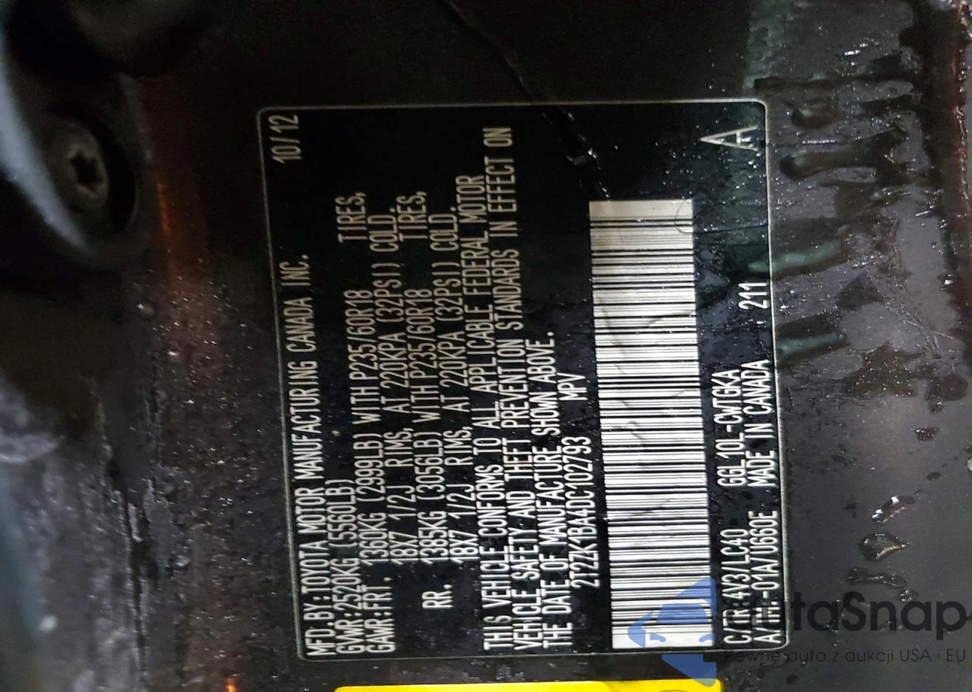 Samochód Lexus RX 2013 (VIN 2T2ZK1BA4DC102793) nie był wcześniej licytowany. Dokumenty są czyste, przebieg odpowiada lub jest niższy niż średnia rynku. Sprzedaje go firma ubezpieczeniowa – polecamy zakup. Dostawa do portu zajmie ok. 6–8 tygodni.