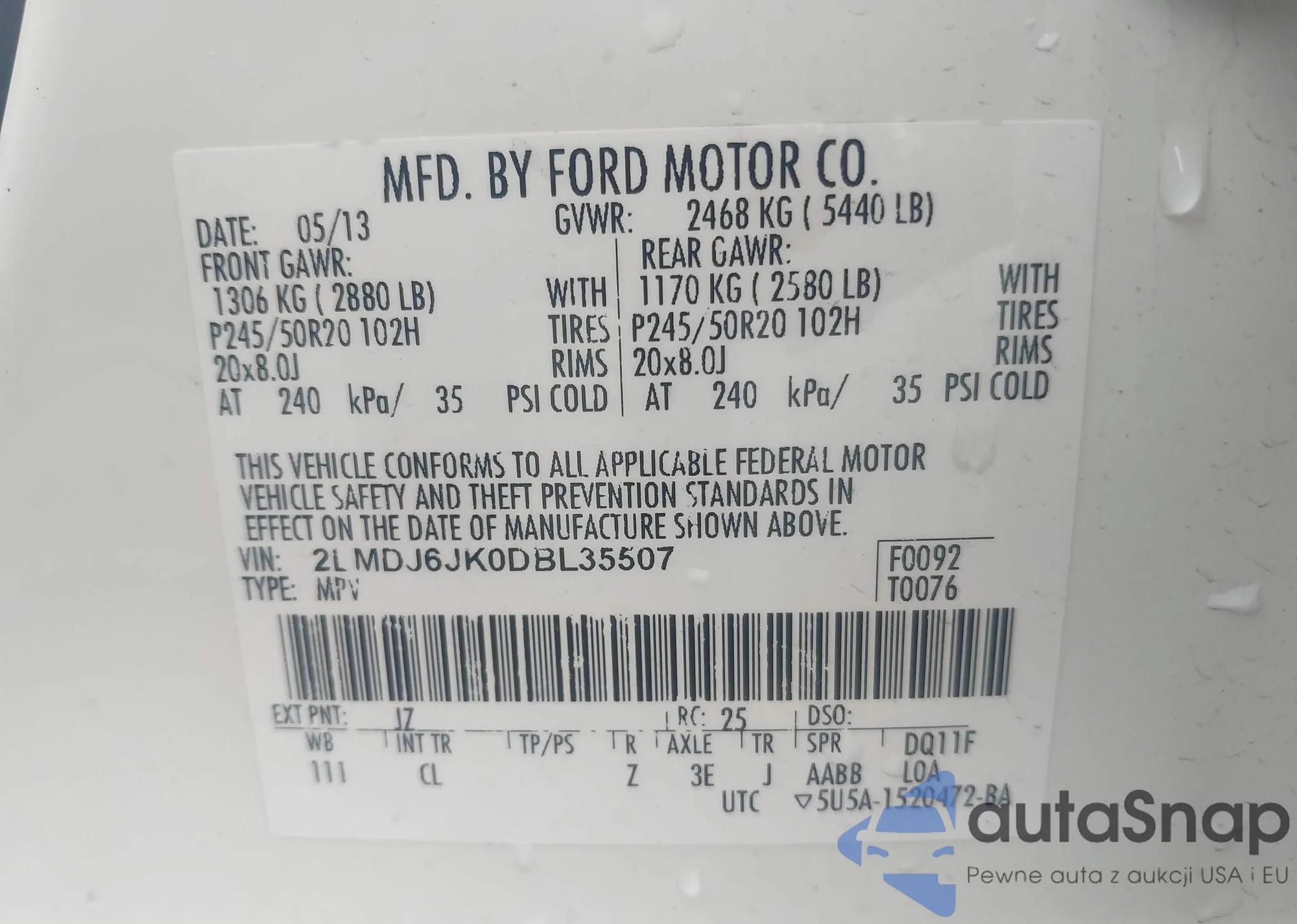 VIN: 2LMDJ6JK0DBL35507