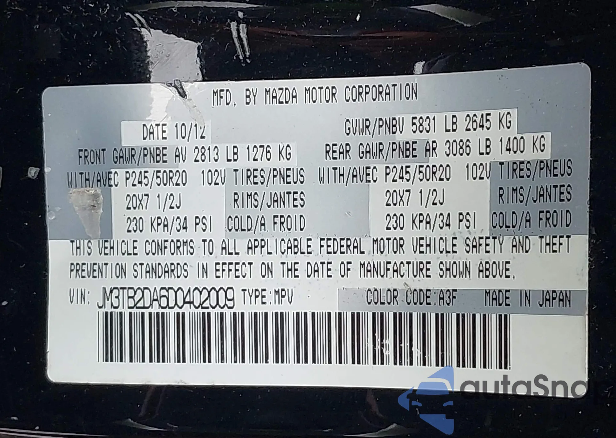 • VIN: JM3TB2DA6D0402009