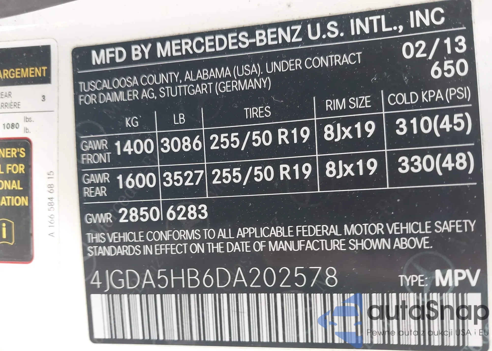 • VIN: 4JGDA5HB6DA202578