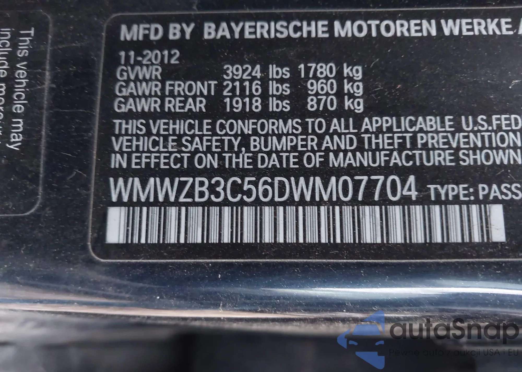 • VIN: WMWZB3C56DWM07704