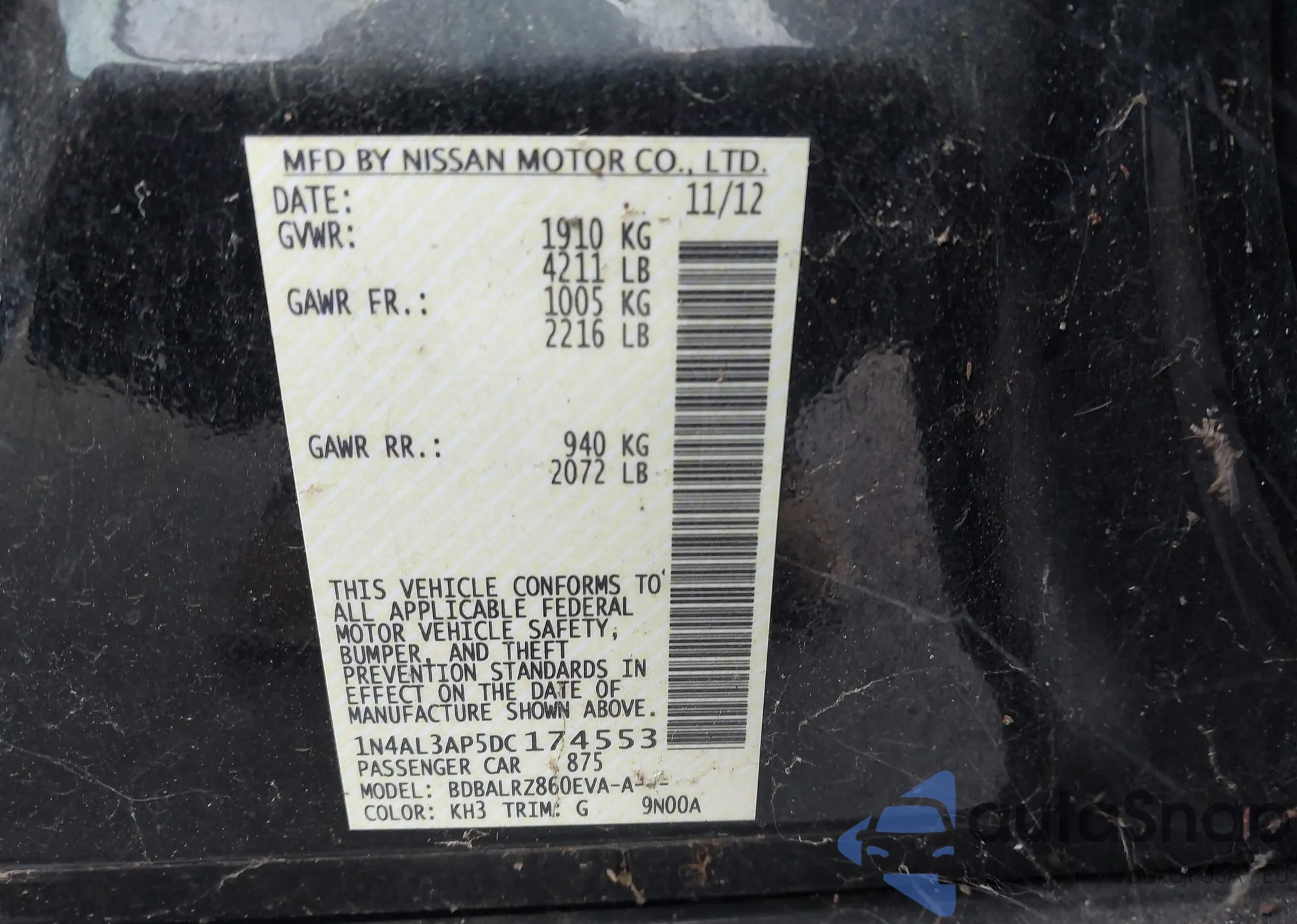 • VIN: 1N4AL3AP5DC174553
