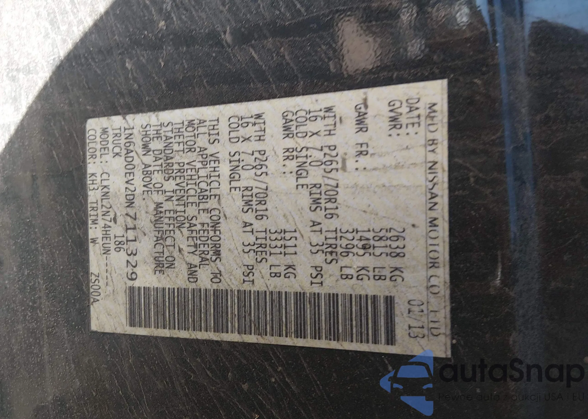 Samochód Nissan Navara (Frontier) 2013 (VIN 1N6AD0EV2DN711329) sprzedaje go niezweryfikowany sprzedawca. Zalecamy raport Carfax i potwierdzenie możliwości rejestracji pojazdu przed zakupem.