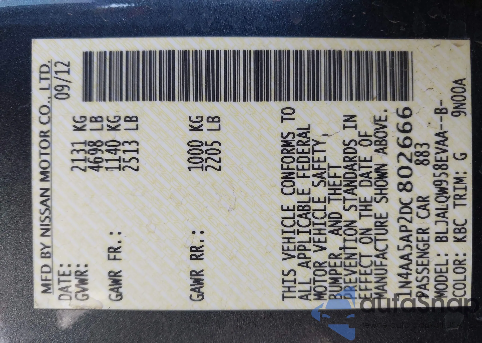 • VIN: 1N4AA5AP2DC802666