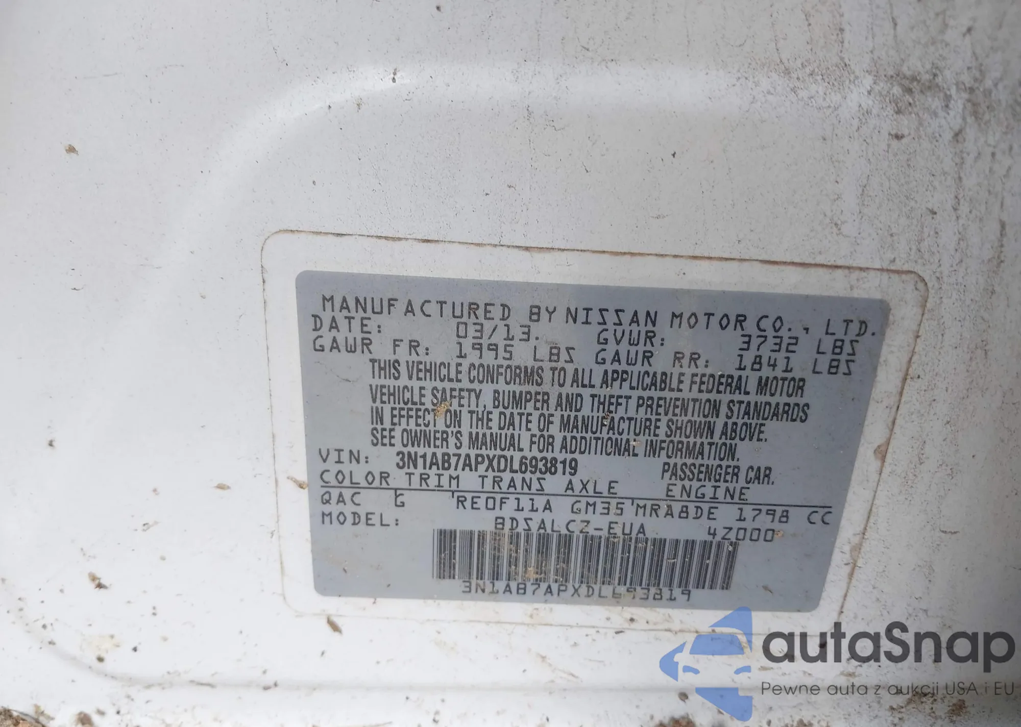VIN: 3N1AB7APXDL693819