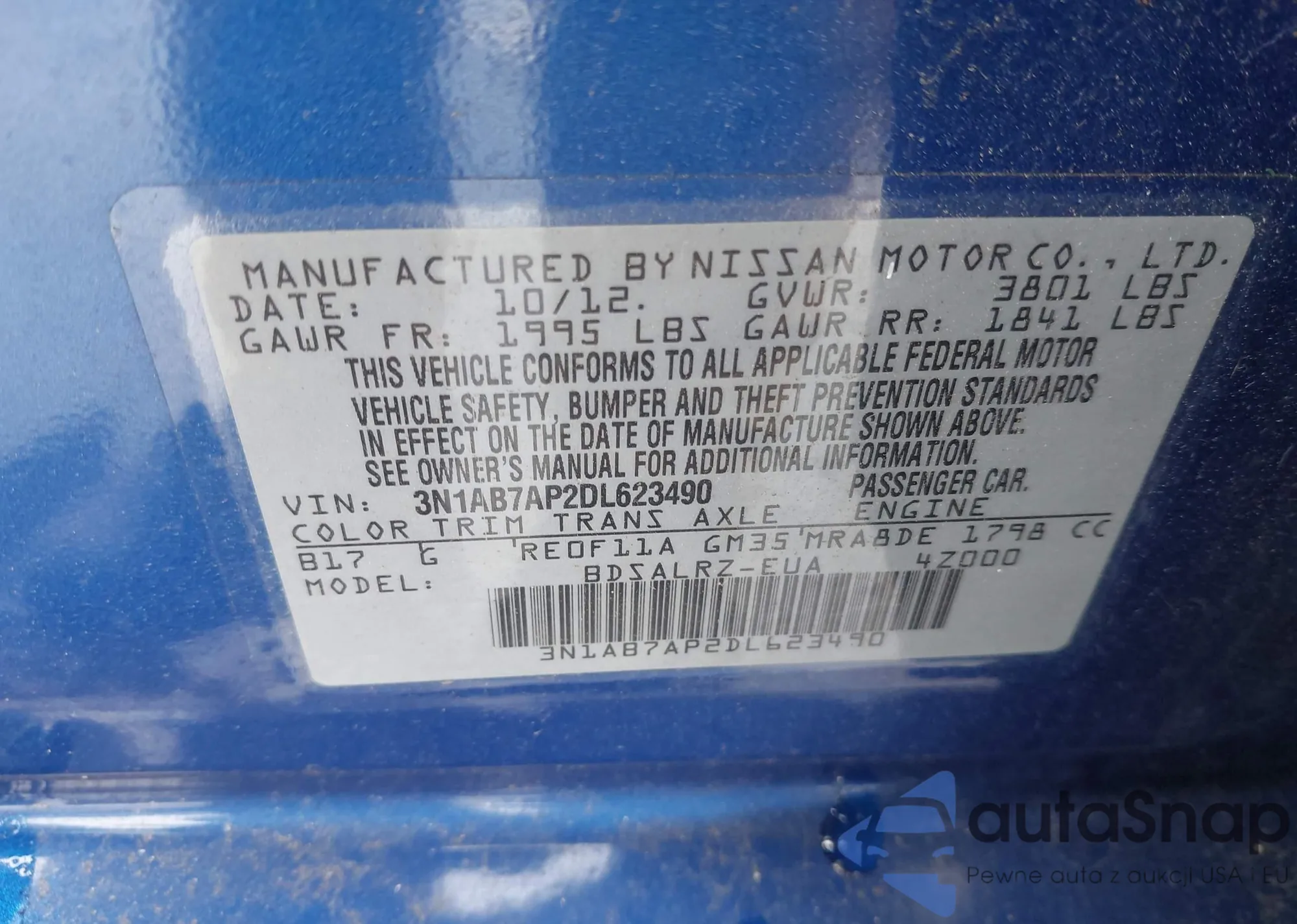 • VIN: 3N1AB7AP2DL623490