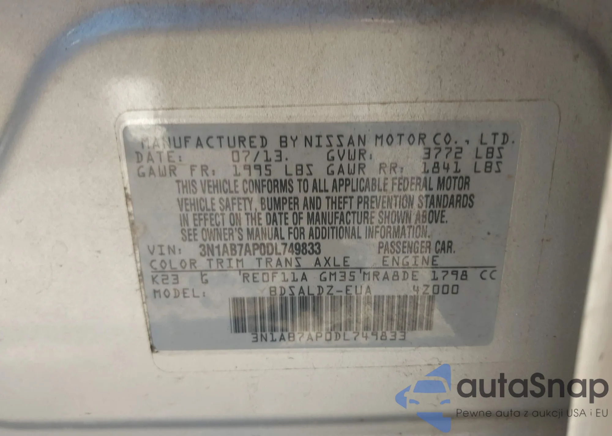 • VIN: 3N1AB7AP0DL749833