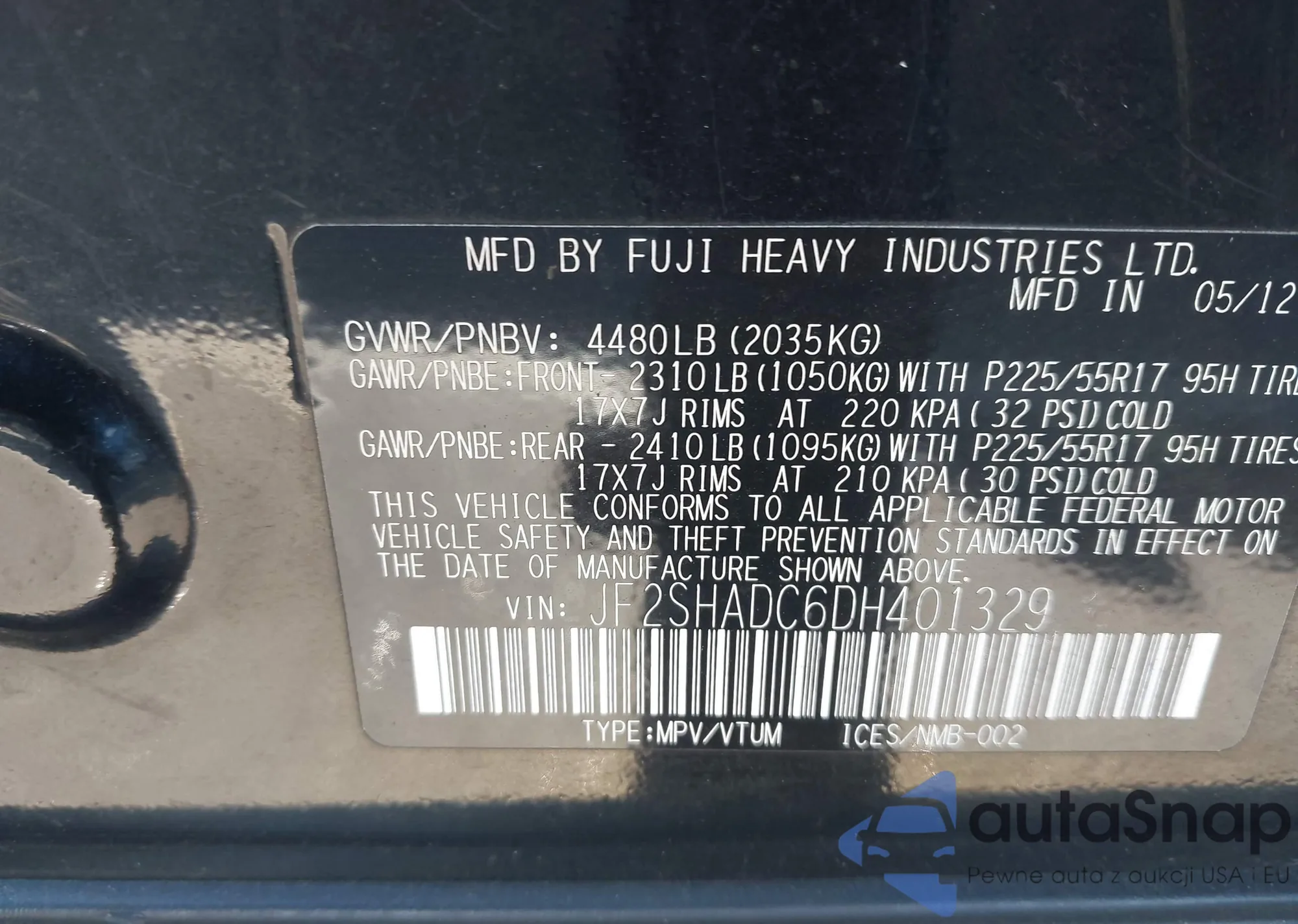 • VIN: JF2SHADC6DH401329