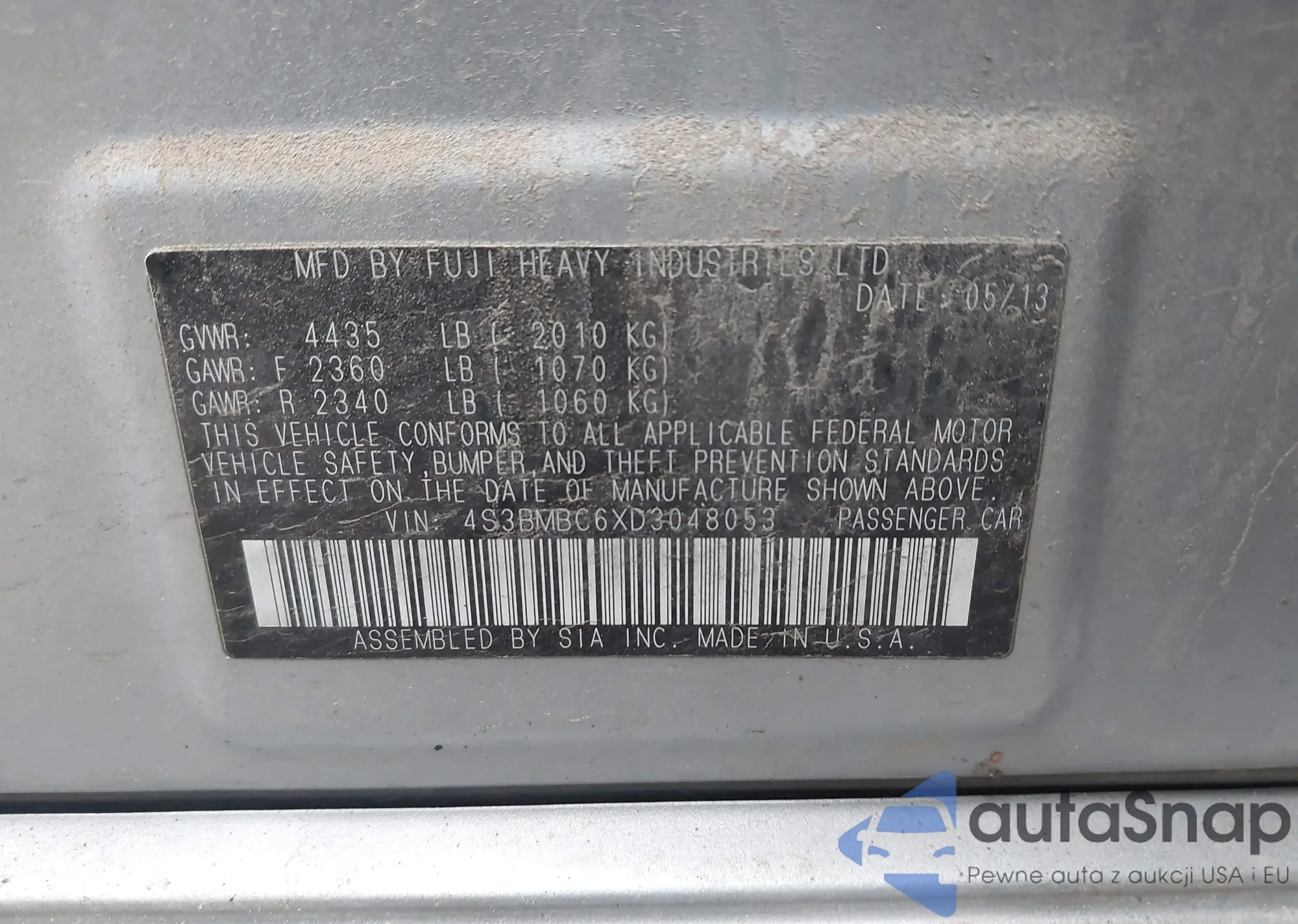VIN: 4S3BMBC6XD3048053
