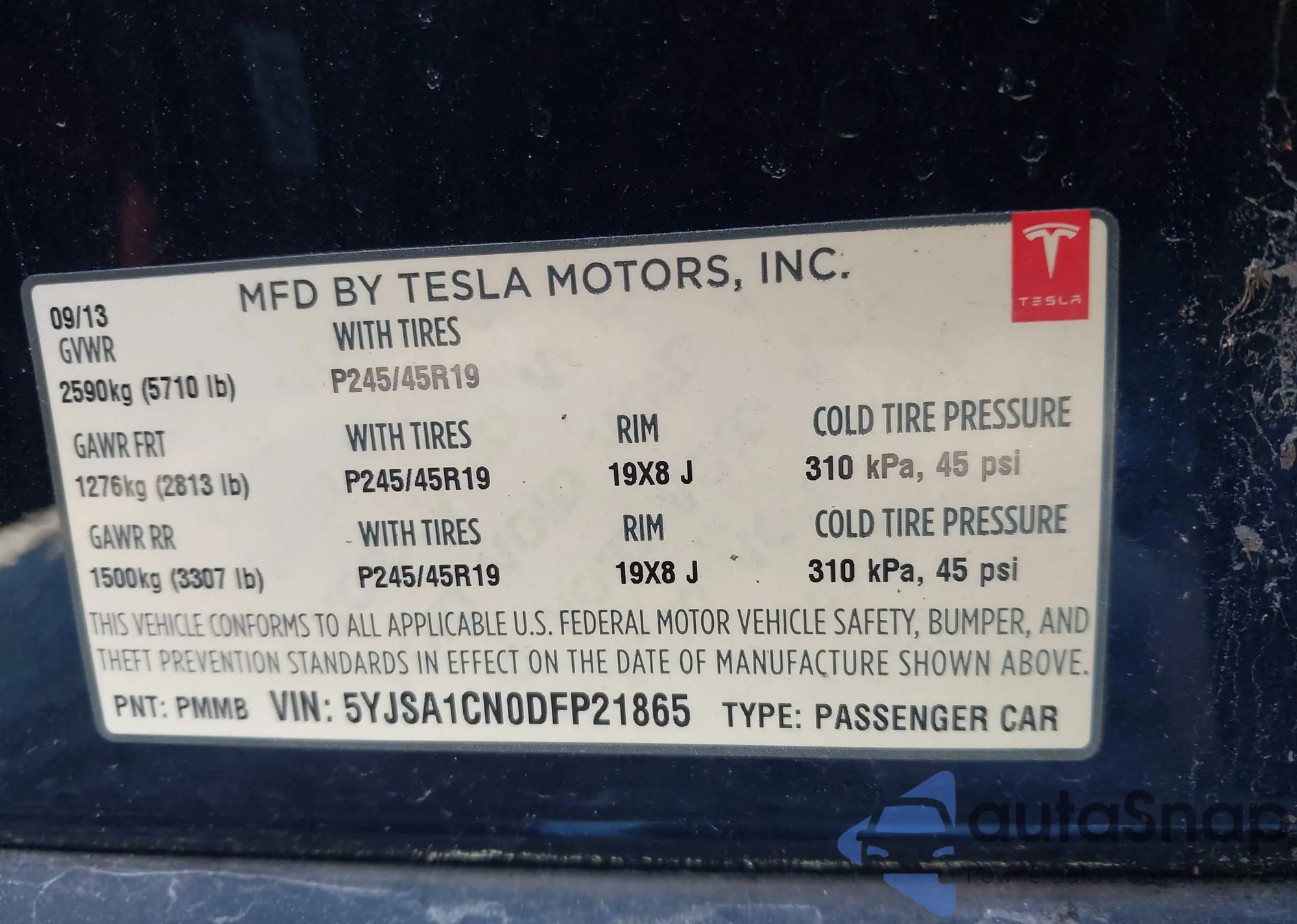 • VIN: 5YJSA1CN0DFP21865