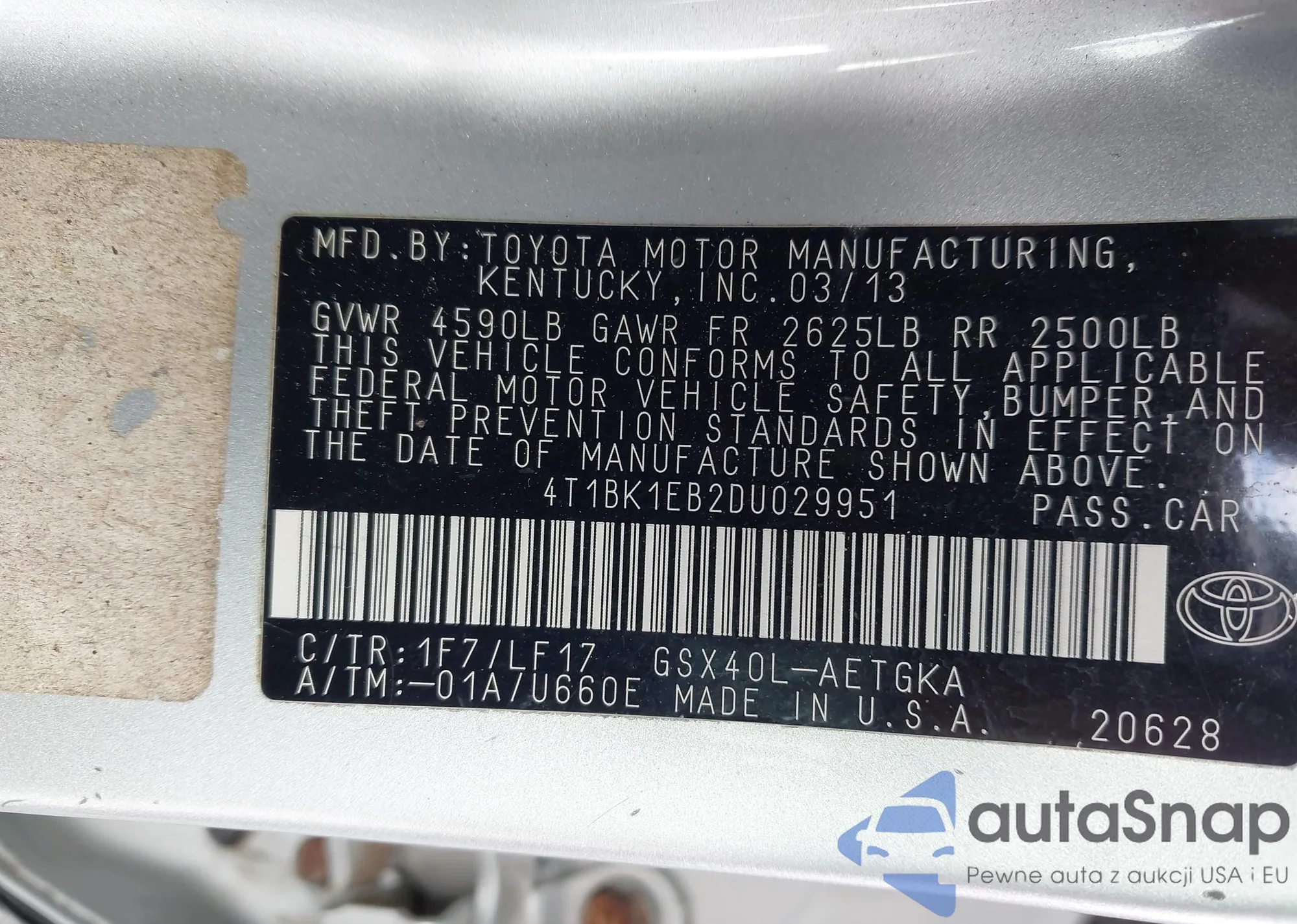 • VIN: 4T1BK1EB2DU029951