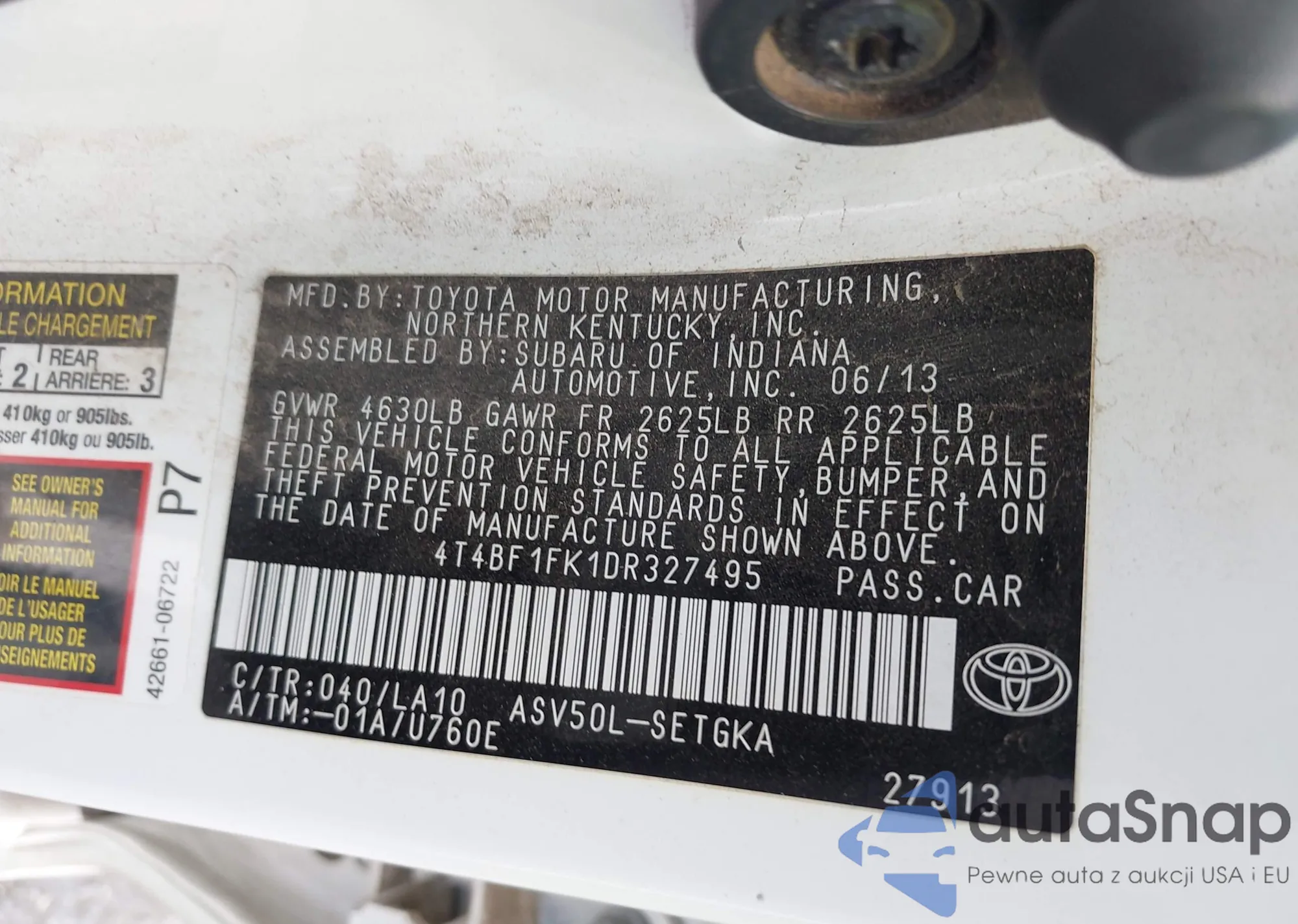 VIN: 4T4BF1FK1DR327495