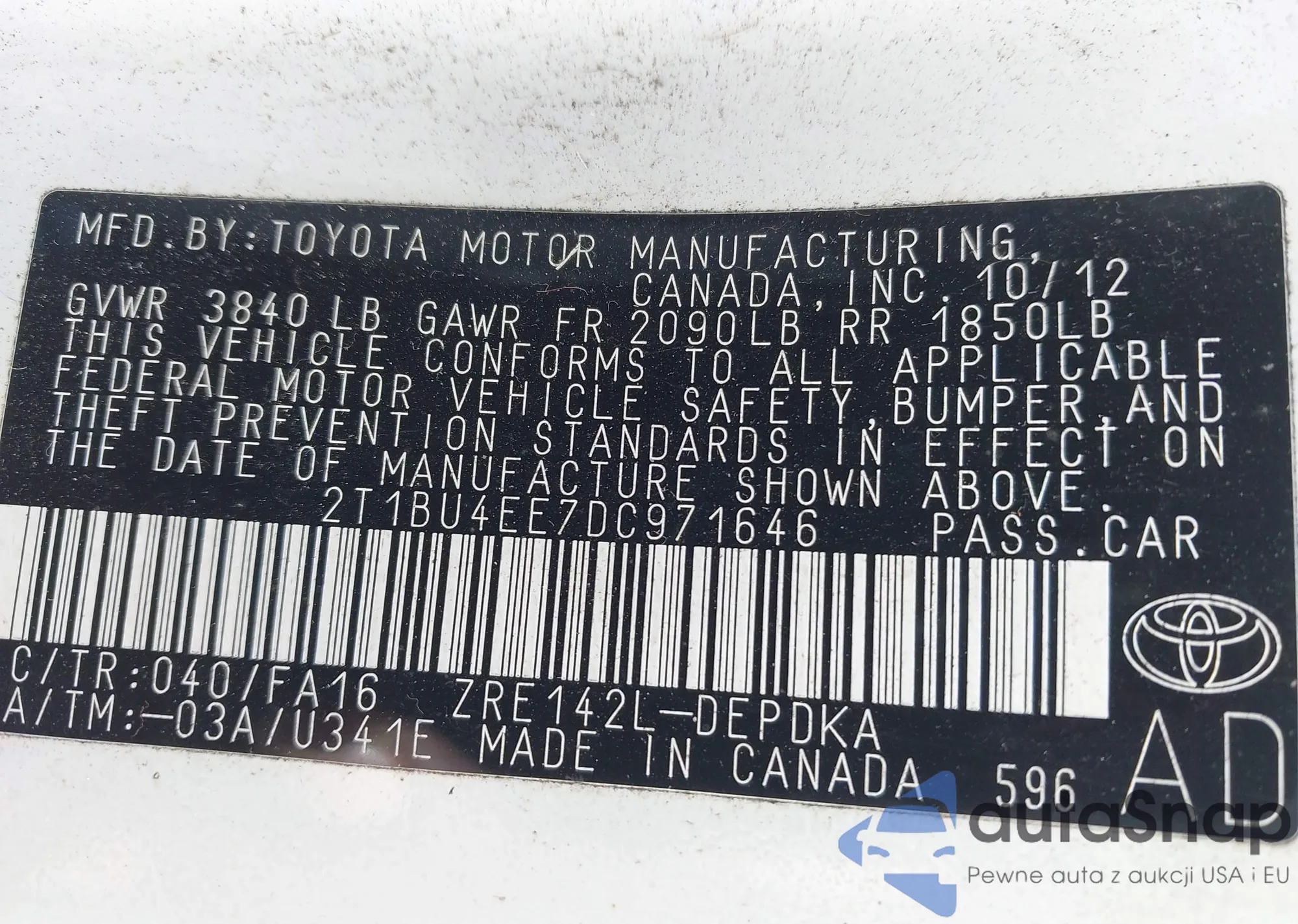 • VIN: 2T1BU4EE7DC971646