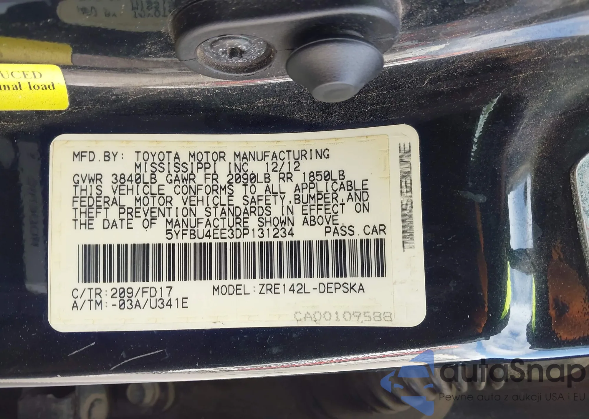 Samochód Toyota Corolla 2013 (VIN 5YFBU4EE3DP131234) nie był wcześniej licytowany. Dokumenty są czyste, przebieg odpowiada lub jest niższy niż średnia rynku. Sprzedaje go firma ubezpieczeniowa – polecamy zakup. Dostawa do portu zajmie ok. 6–8 tygodni.