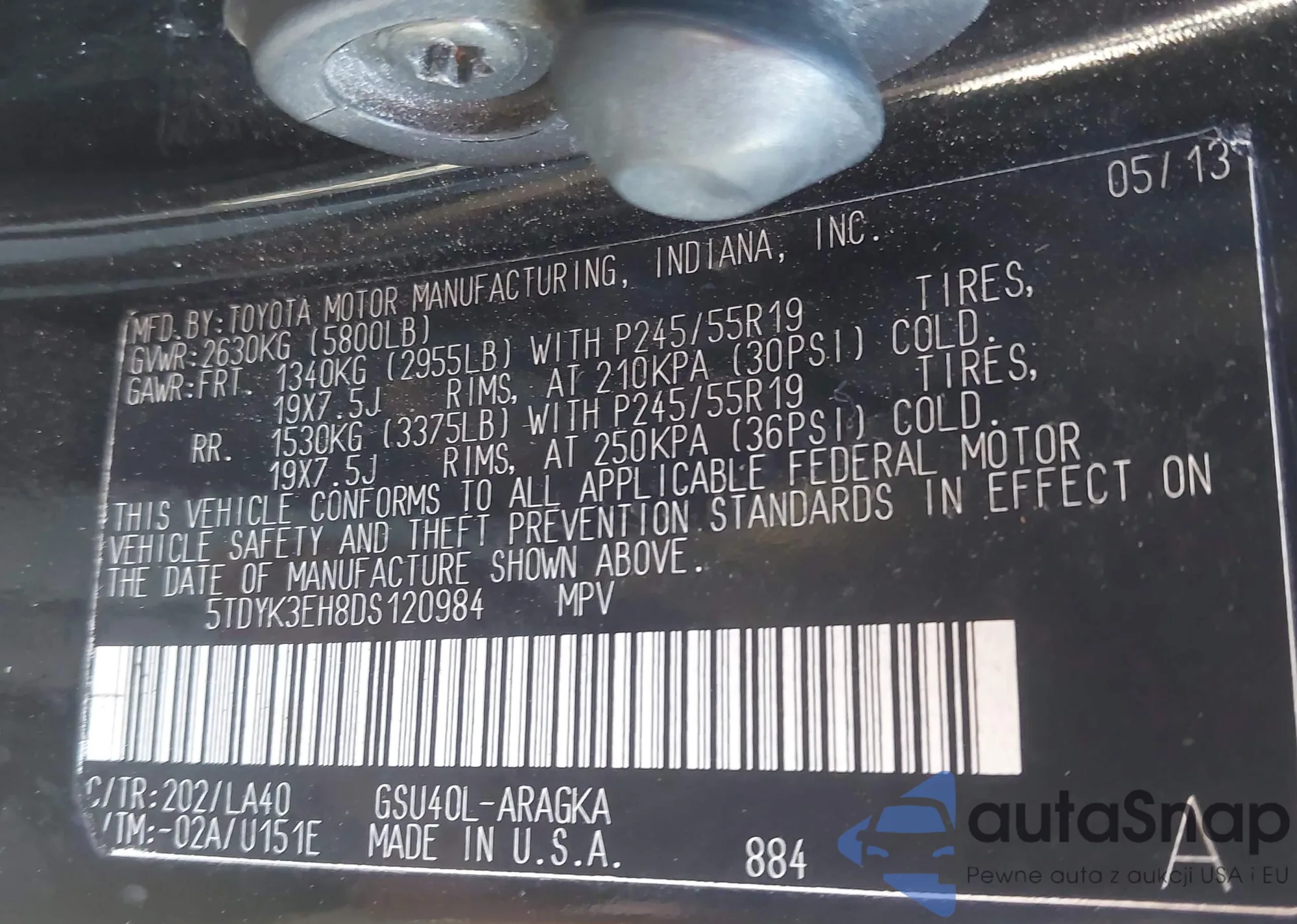 VIN: 5TDYK3EH8DS120984
