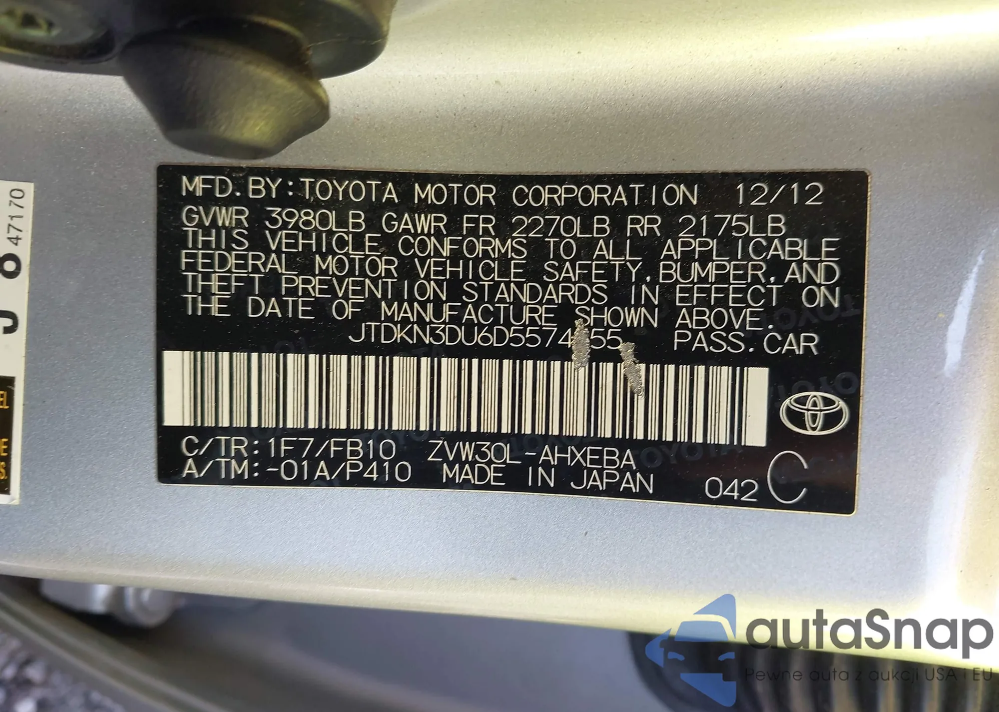 • VIN: JTDKN3DU6D5574555