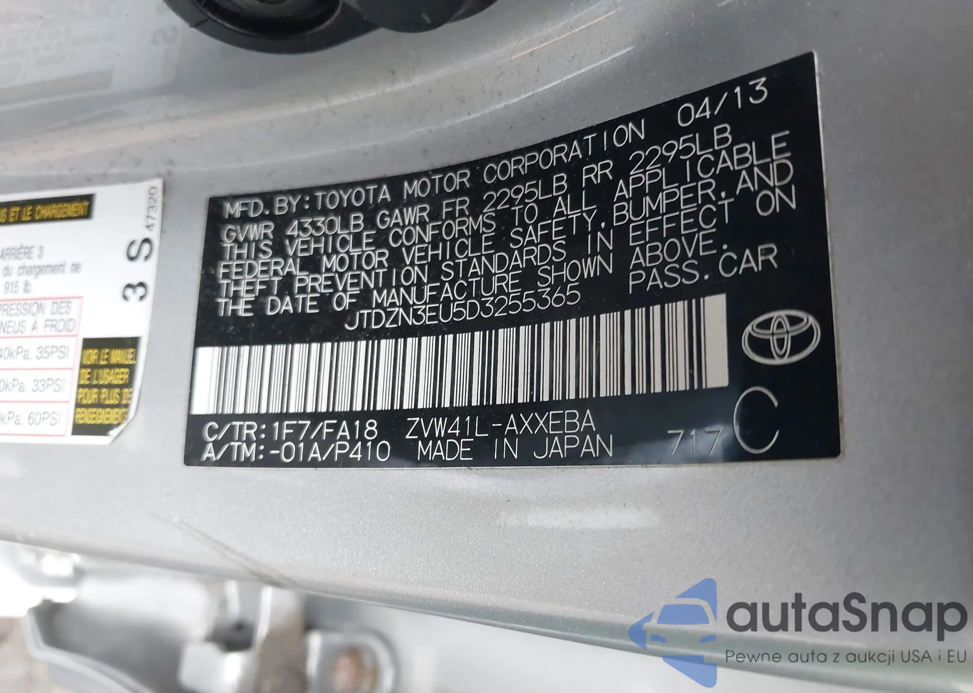 VIN: JTDZN3EU5D3255365