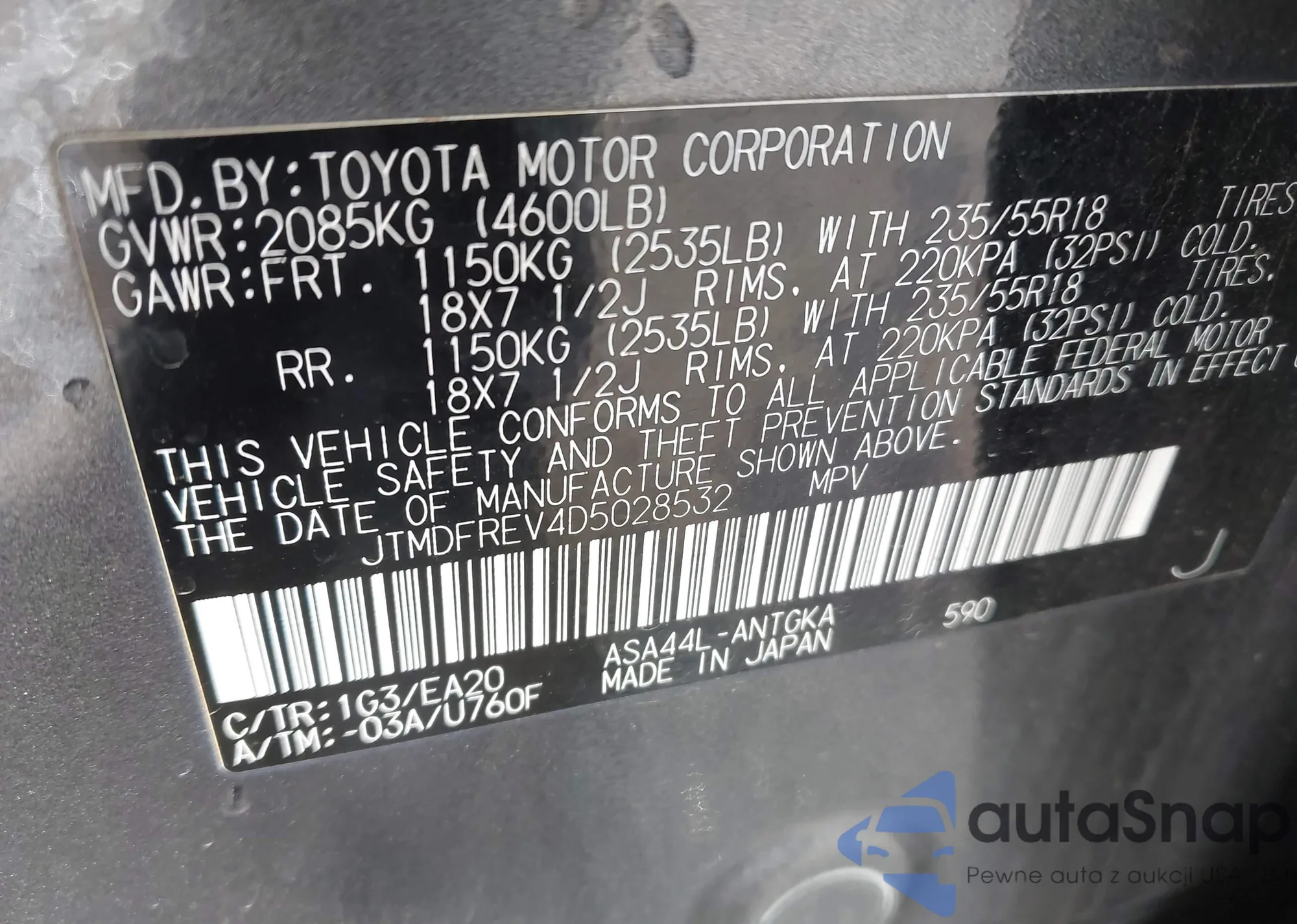 • VIN: JTMDFREV4D5028532