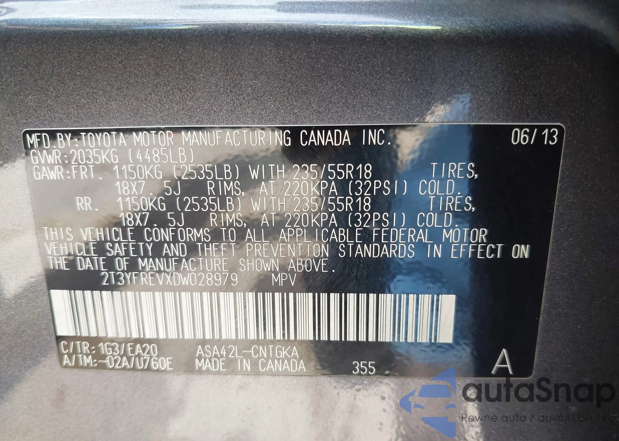 VIN: 2T3YFREVXDW028979
