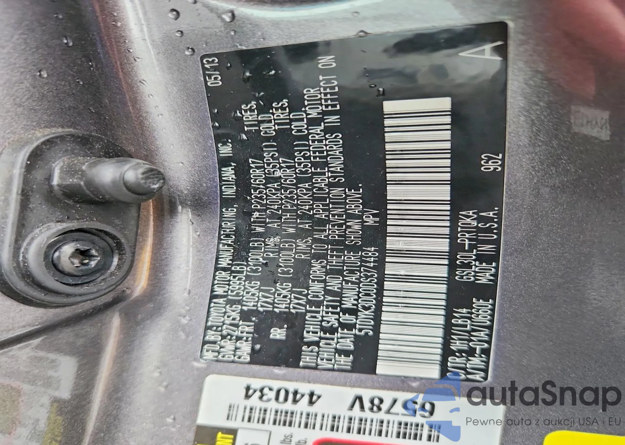 VIN: 5TDYK3DC0DS374484