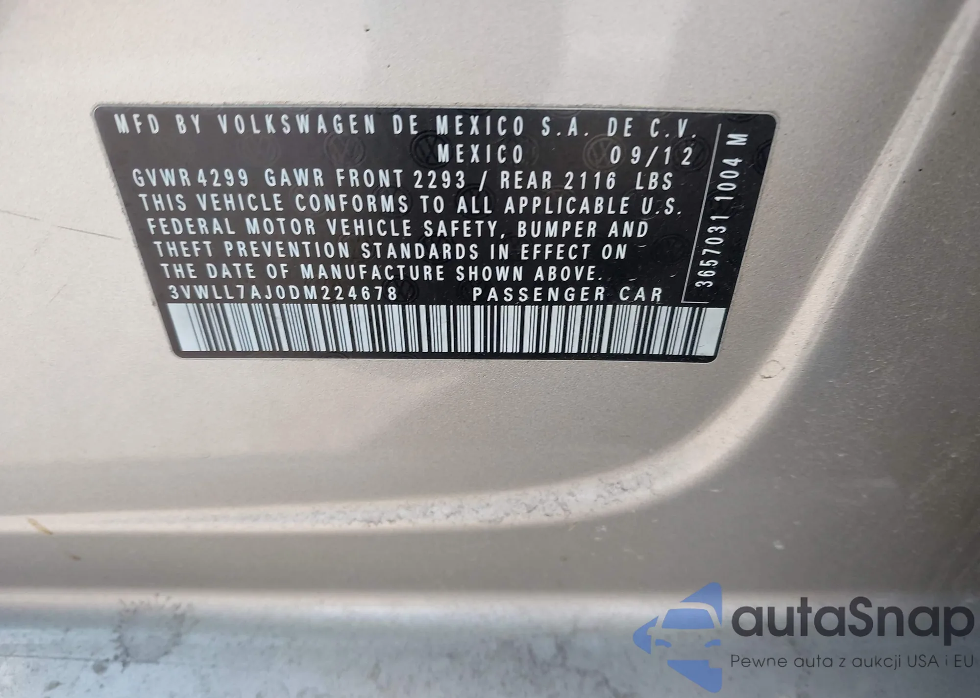 Samochód Volkswagen Jetta 2013 (VIN 3VWLL7AJ0DM224678) nie był wcześniej licytowany. Dokumenty są czyste, przebieg odpowiada lub jest niższy niż średnia rynku. Sprzedaje go firma ubezpieczeniowa – polecamy zakup. Dostawa do portu zajmie ok. 6–8 tygodni.