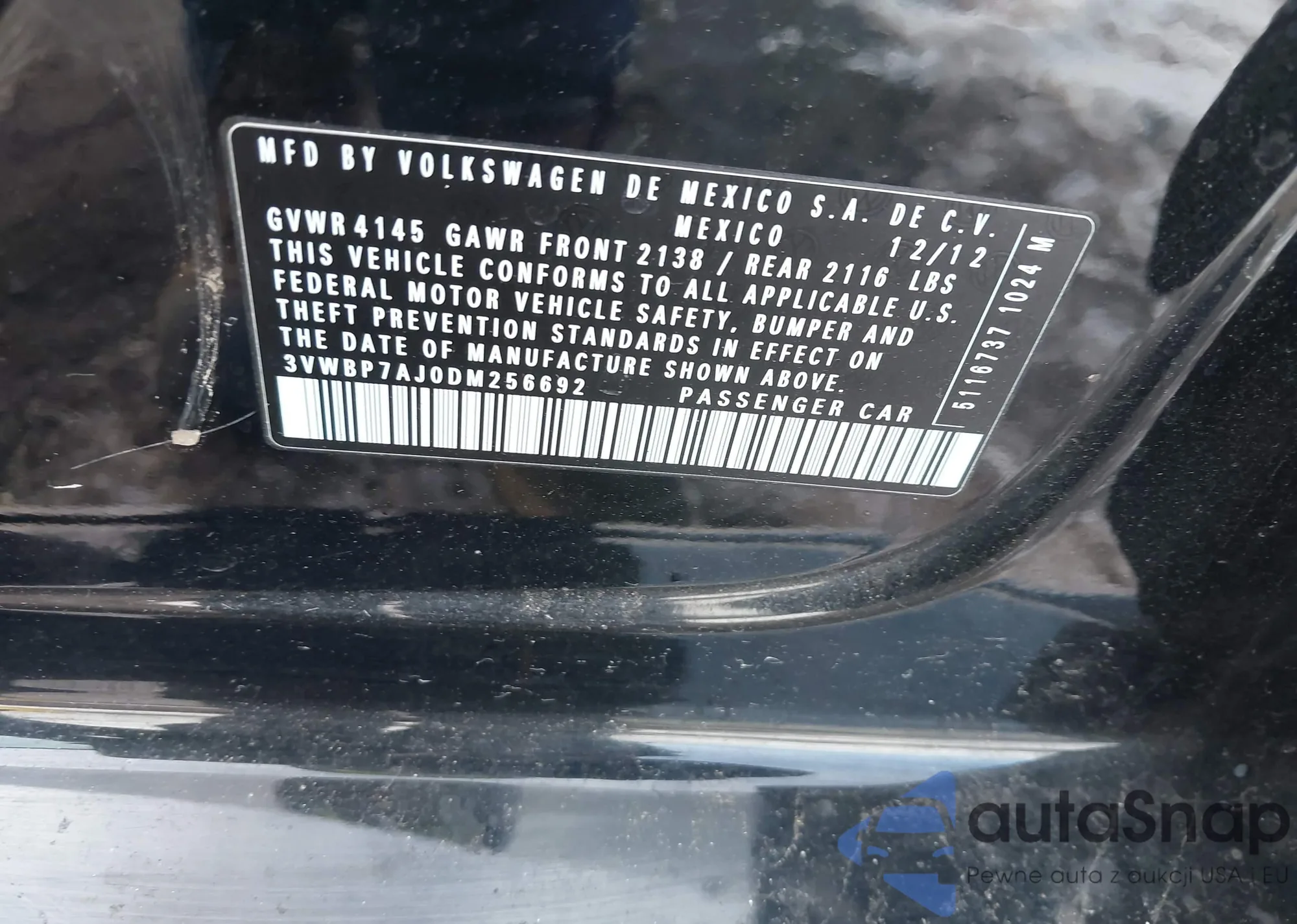 Samochód Volkswagen Jetta 2013 (VIN 3VWBP7AJ0DM256692) nie był wcześniej licytowany. Dokumenty są czyste, przebieg odpowiada lub jest niższy niż średnia rynku. Sprzedaje go firma ubezpieczeniowa – polecamy zakup. Dostawa do portu zajmie ok. 6–8 tygodni.