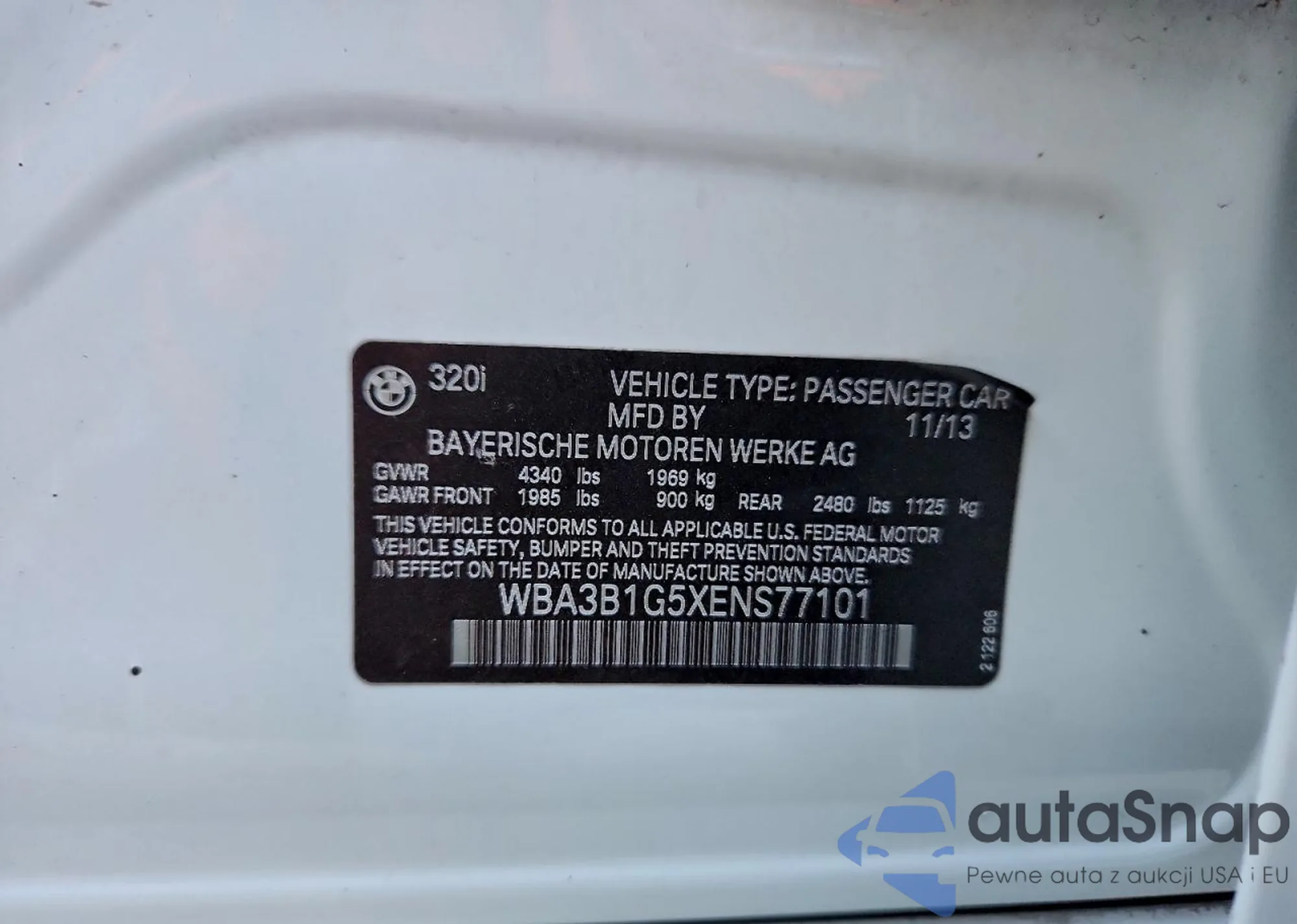 Samochód BMW 3er 2014 (VIN WBA3B1G5XENS77101) nie był wcześniej licytowany. Dokumenty są czyste, przebieg odpowiada lub jest niższy niż średnia rynku. Sprzedaje go firma ubezpieczeniowa – polecamy zakup. Dostawa do portu zajmie ok. 6–8 tygodni.