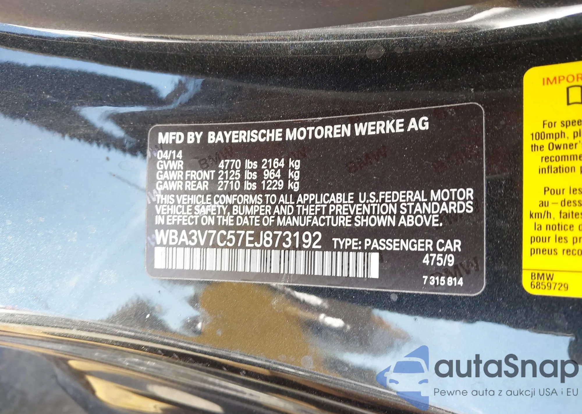 • VIN: WBA3V7C57EJ873192
