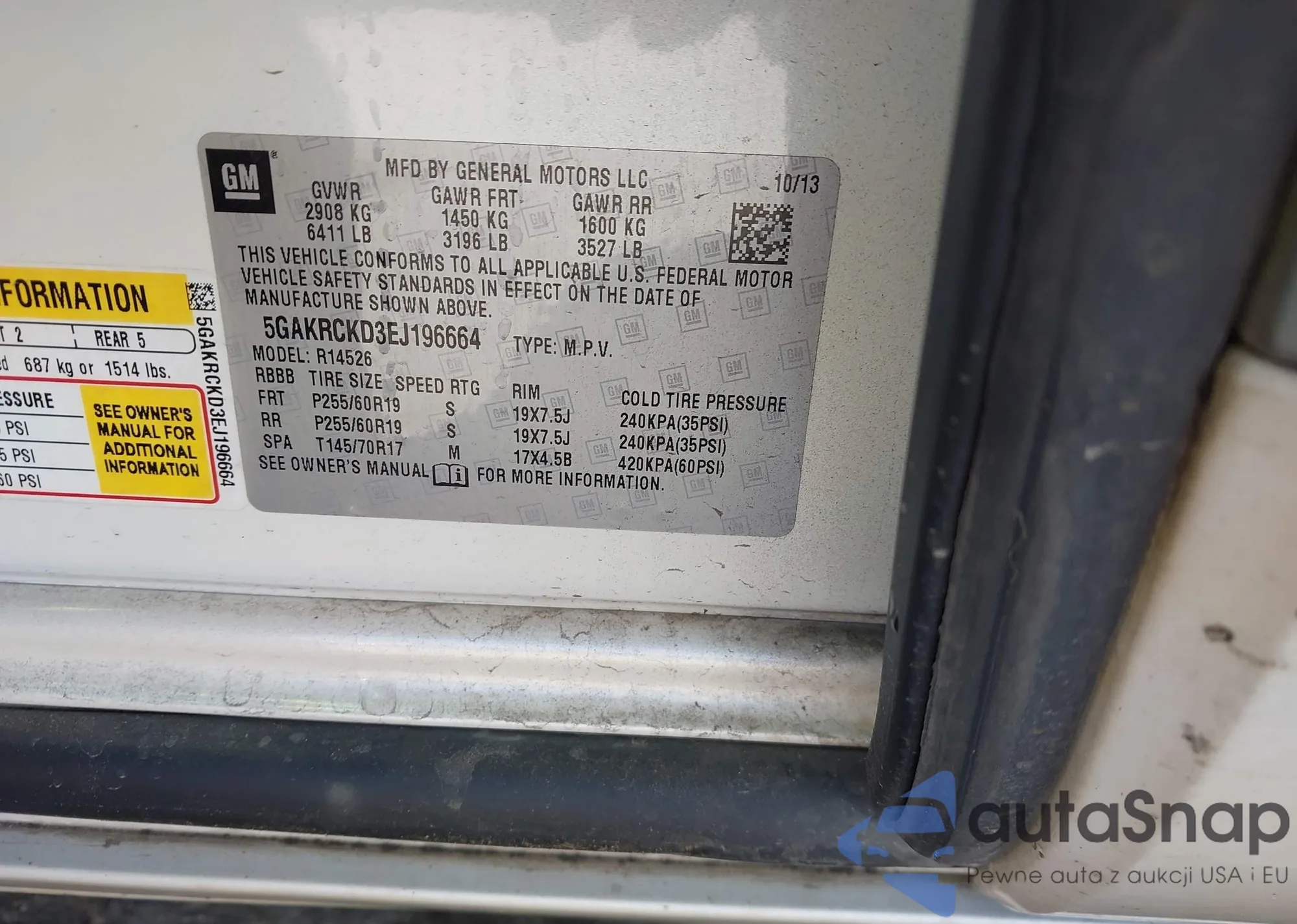 • VIN: 5GAKRCKD3EJ196664