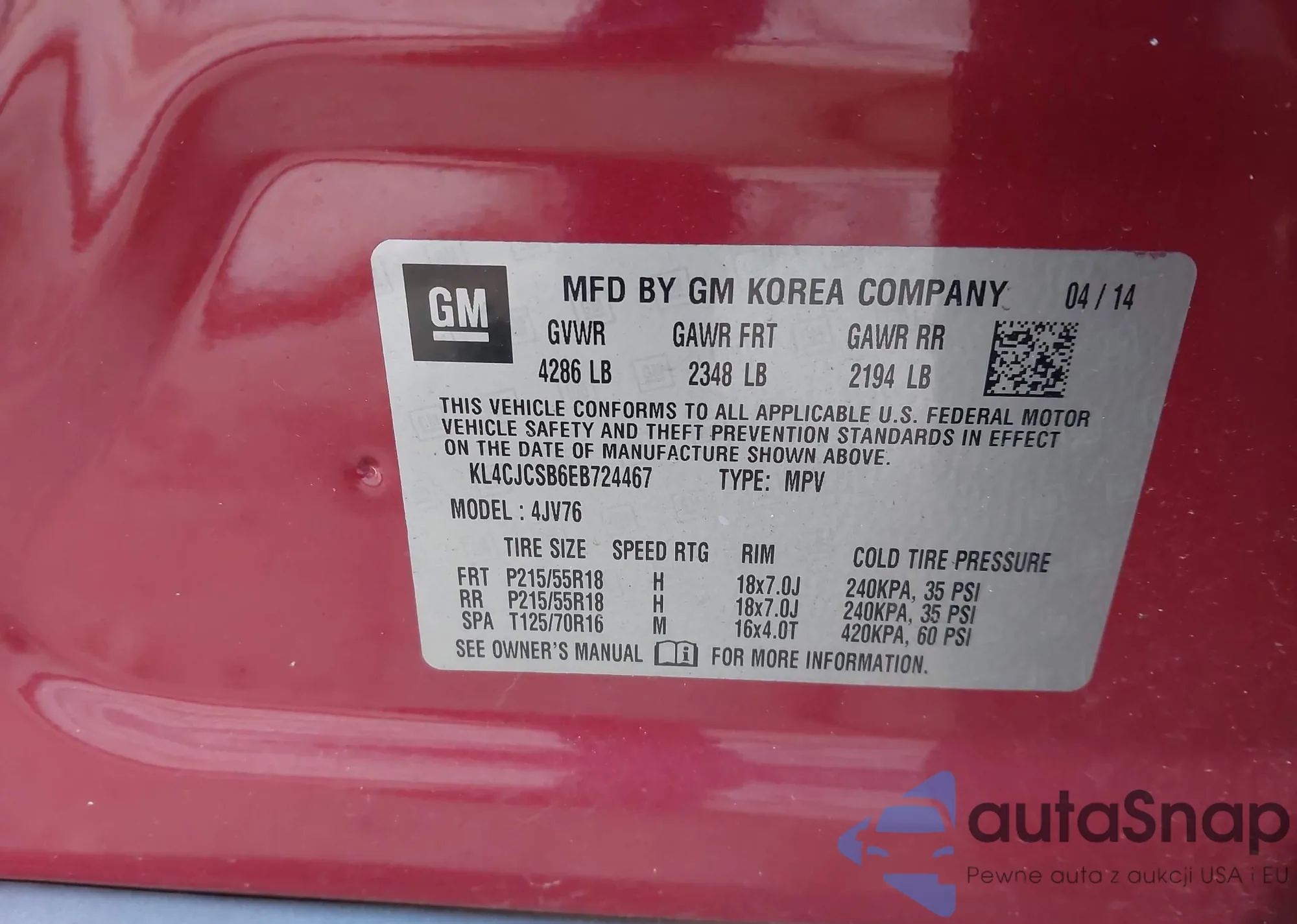 • VIN: KL4CJCSB6EB724467