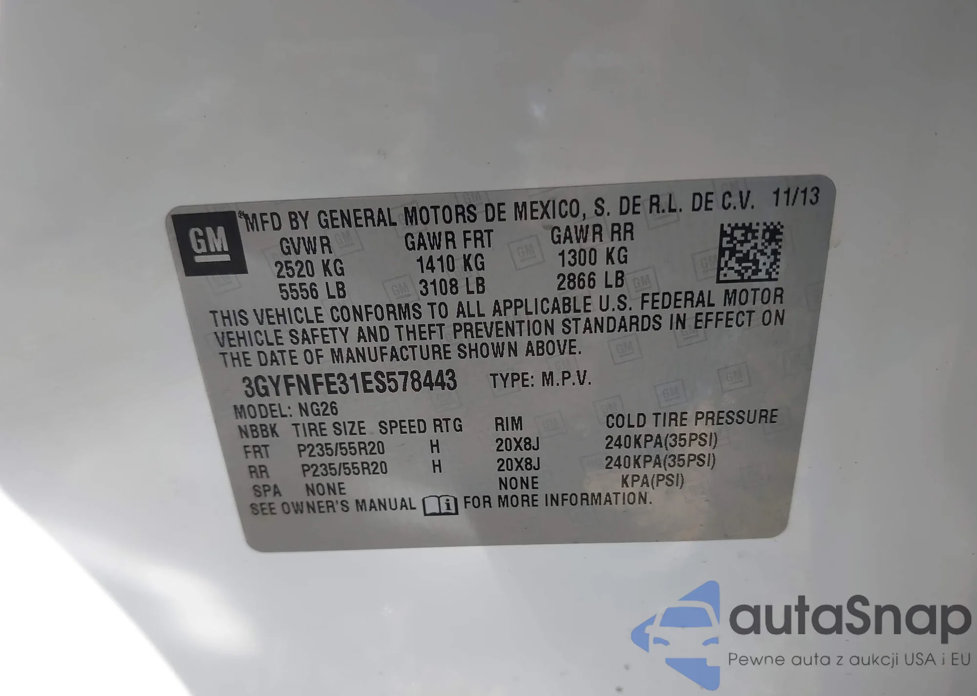 • VIN: 3GYFNFE31ES578443